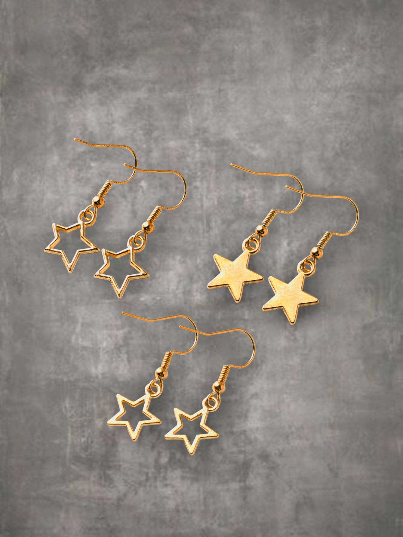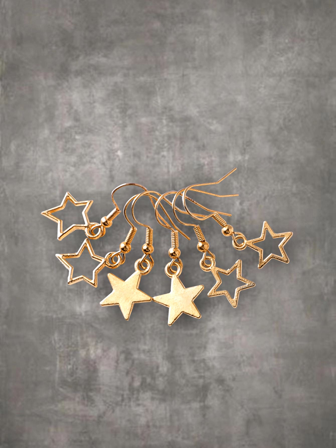 Grunge Punk 3pairs Star Decor Drop Earrings