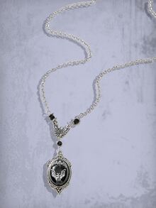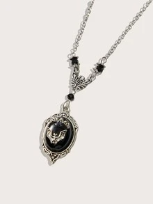 Grunge Punk Bat Detail Oval Charm Necklace