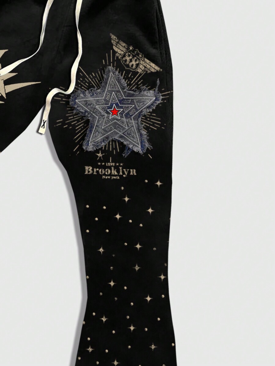 Street Life Black Flare Leg Pants, No Patchwork - BT, For Rave