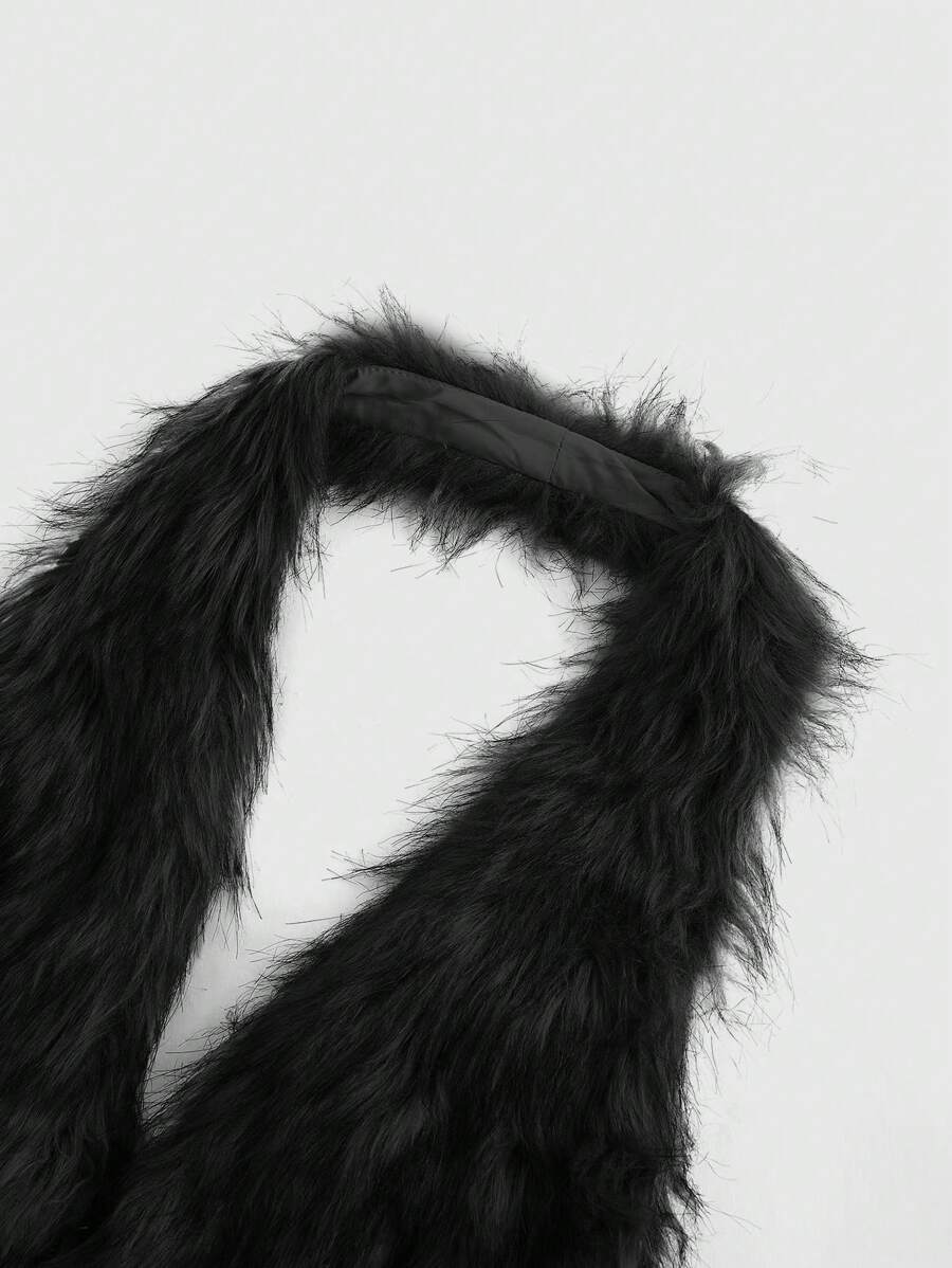 Grunge Punk Black Holiday New Year Y2K Halter Sexy Vintage Fur Collar Cross Pendant Fur Coat Women Tank Top