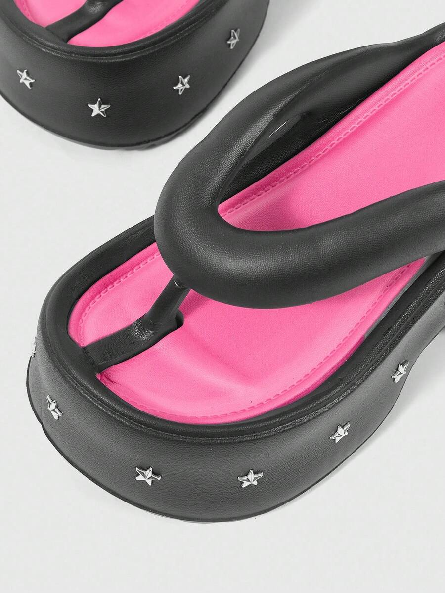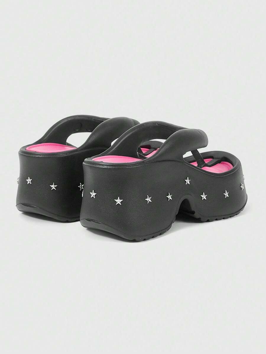 Grunge Punk Black Rock Punk Open Toe Rivet Gothic Roman Beach Sandals For Women, Halloween