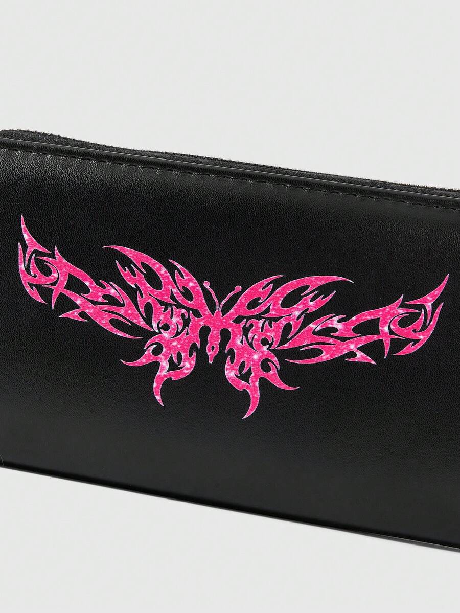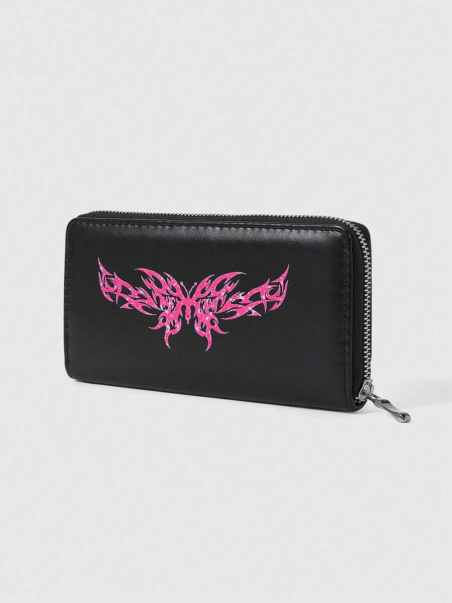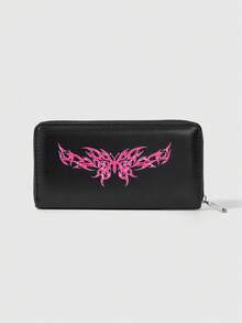 Grunge Punk Bow Grid Style Long Wallet, Cute And Versatile