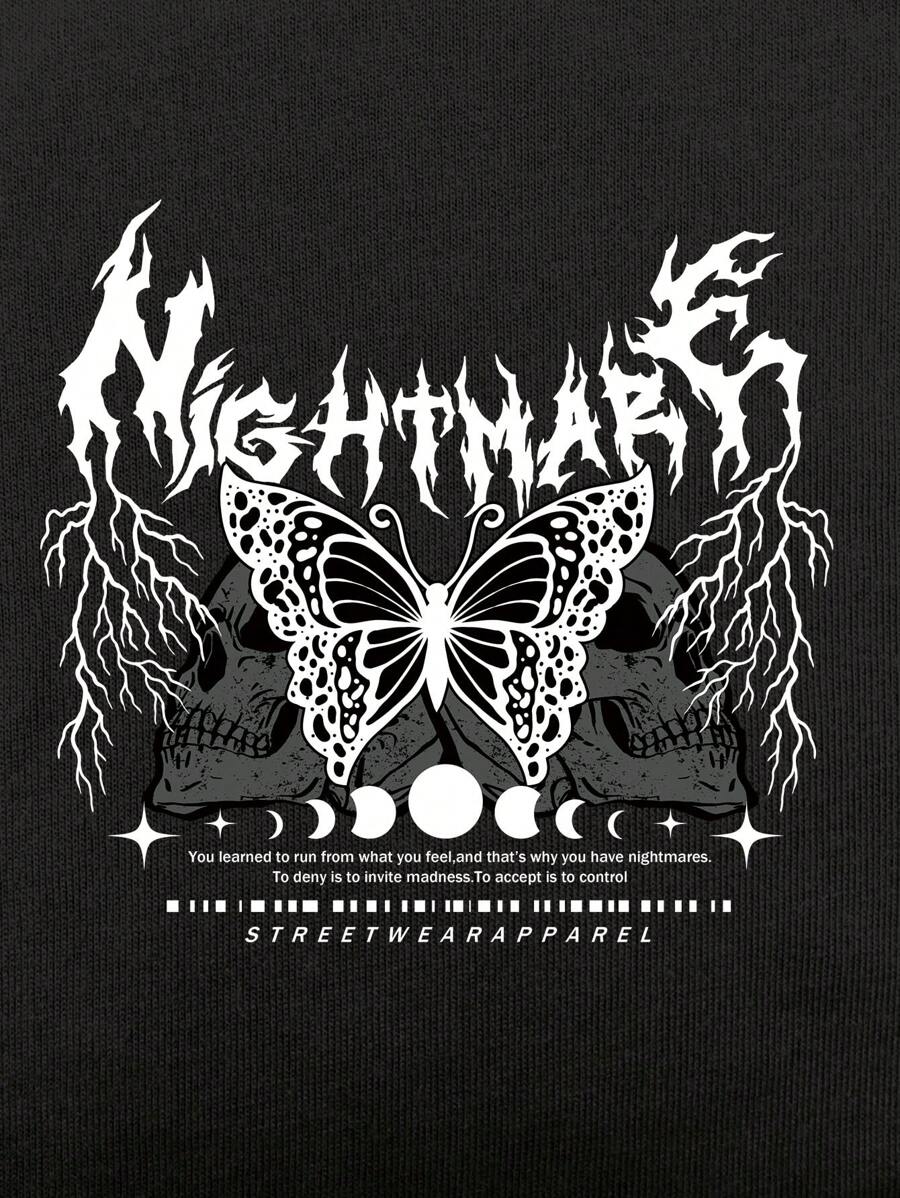 Grunge Punk Butterfly & Slogan Printed Crop Top For Women