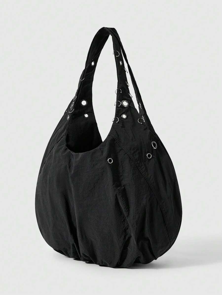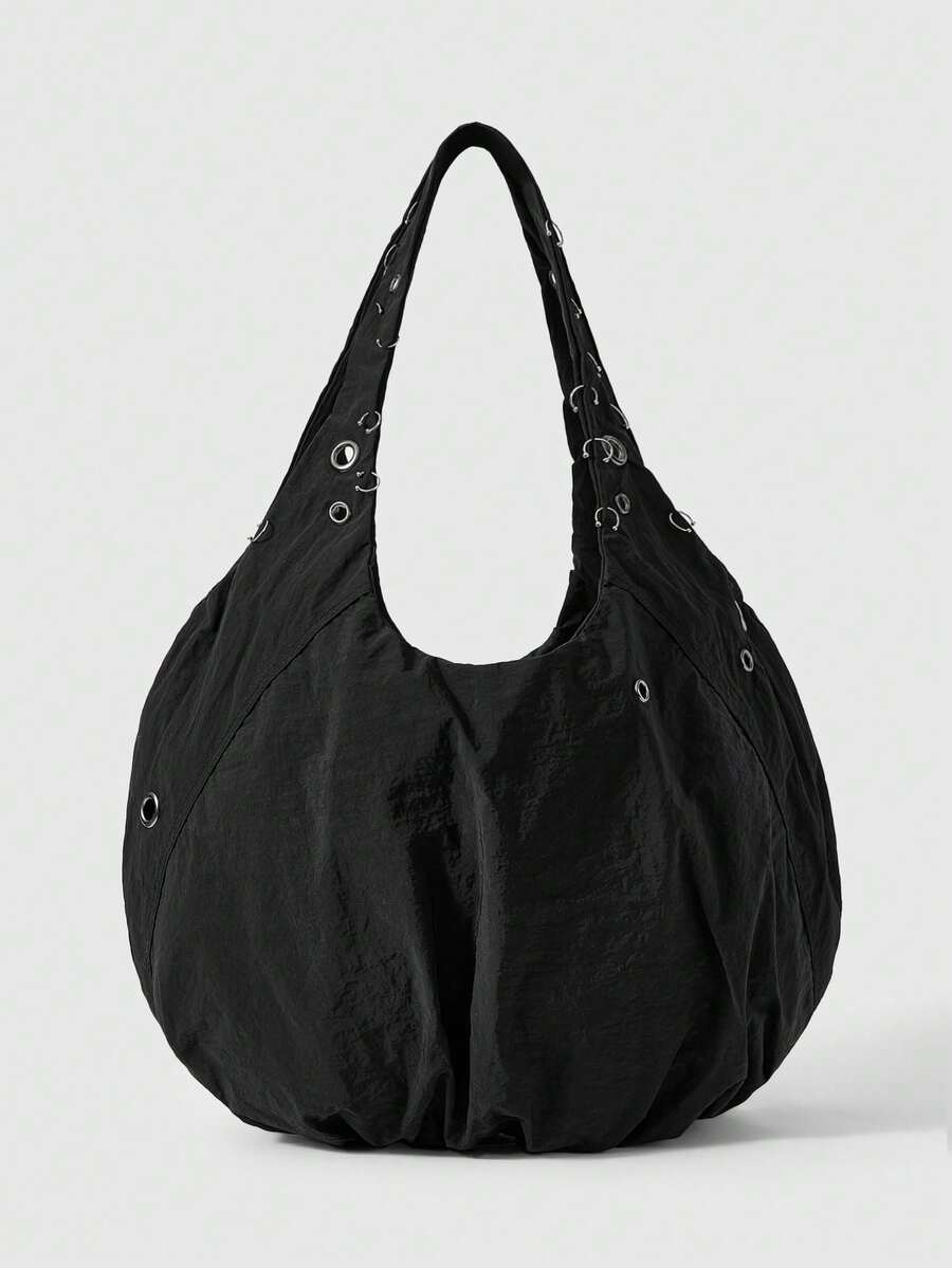 Grunge Punk Casual Large Capacity Versatile Women's Nylon Porous Ring Shoulder Bag
