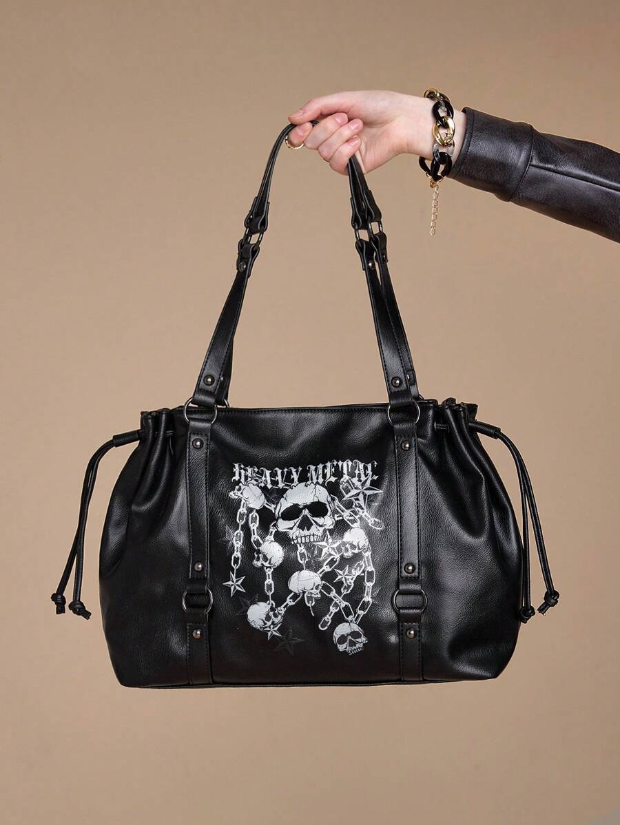 Grunge Punk Casual Minimalist Skeleton Tote Bag, Suitable For Daily Use