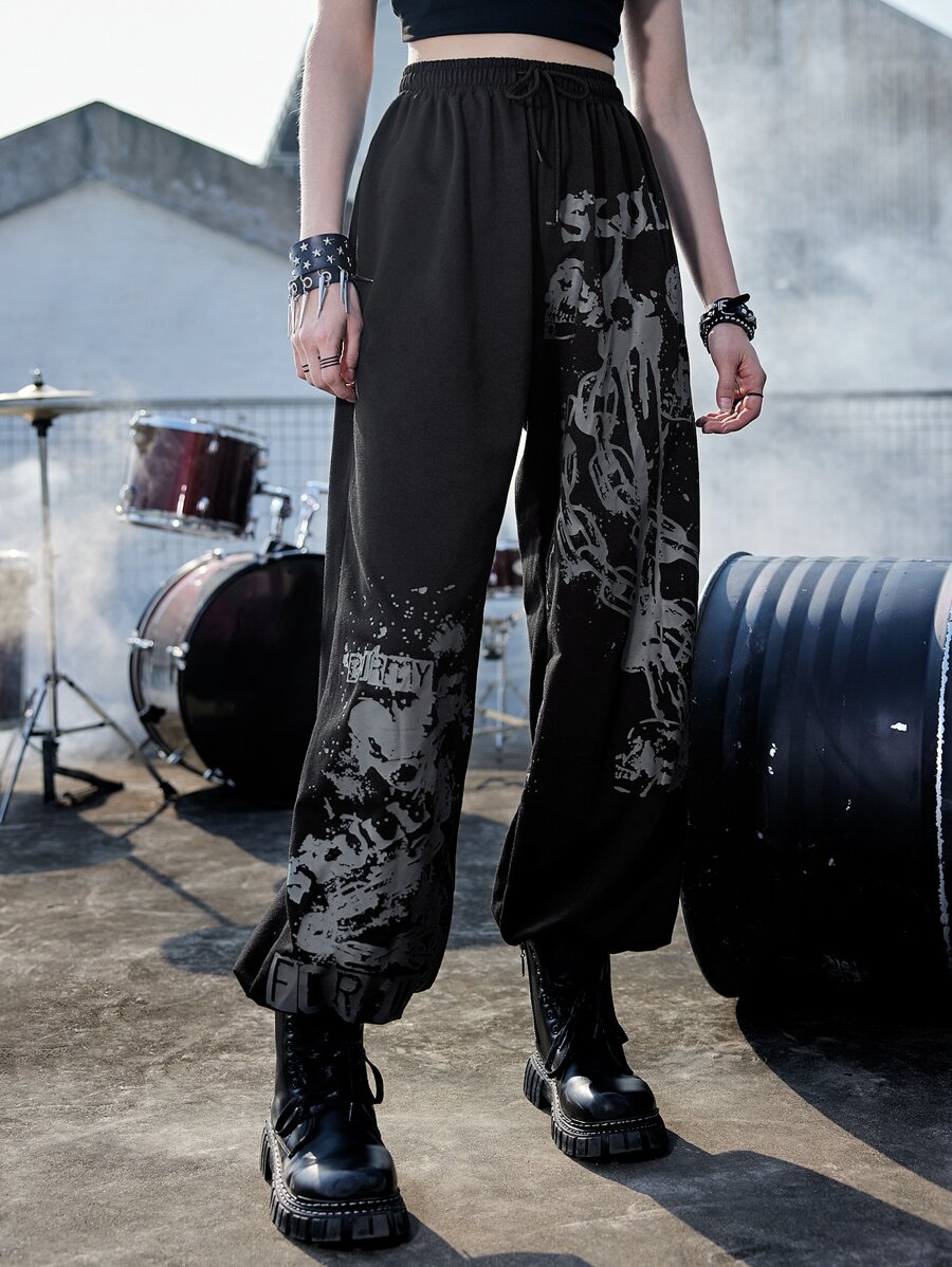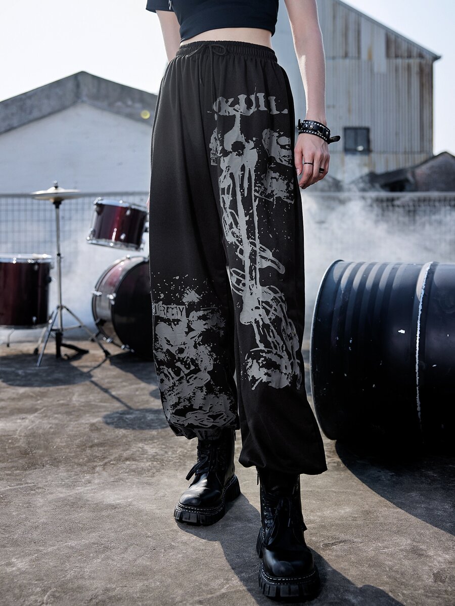 Grunge Punk Chain & Skull Graphic Sweatpants