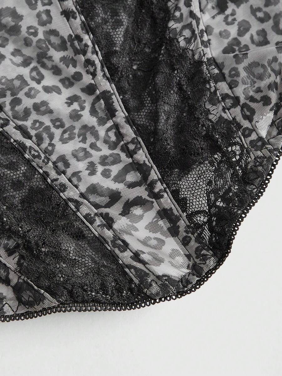 Grunge Punk Contrast Lace Leopard Printed Camisole Top, School