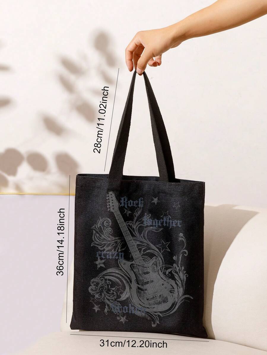Grunge Punk Creative Dark Guitar Printed Double Sided Canvas Shoulder Bag