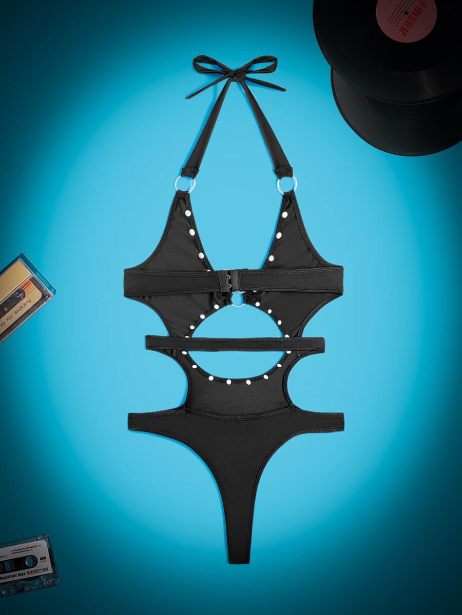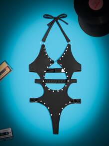Grunge Punk Cut Out Studded Teddy Bodysuit