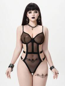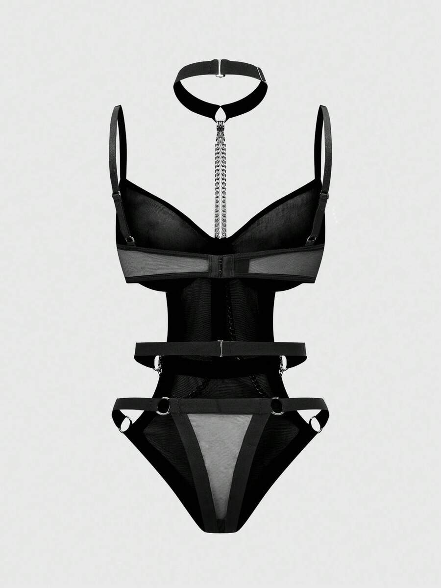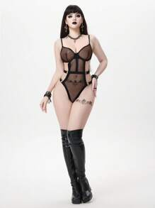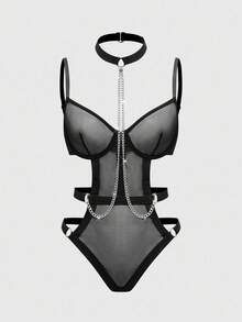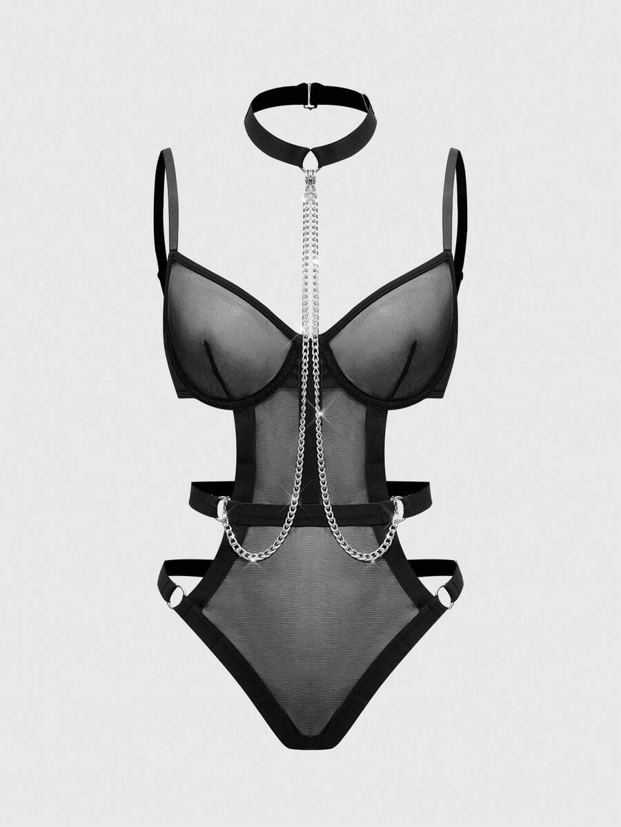 Grunge Punk Dark Punk Mesh Halter Metal Chain Sexy Bodysuit