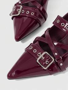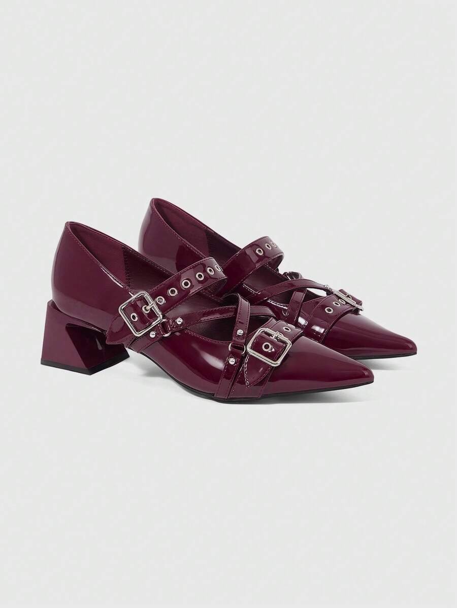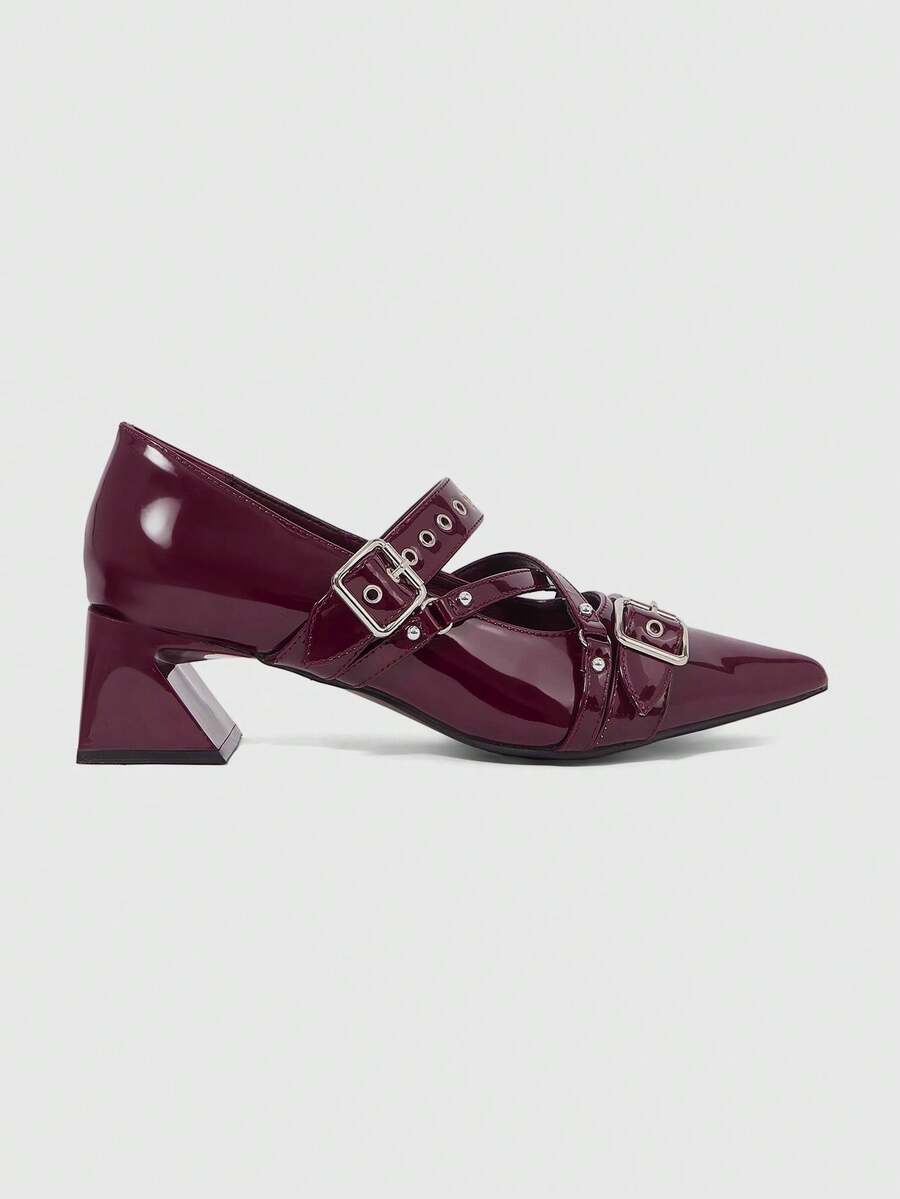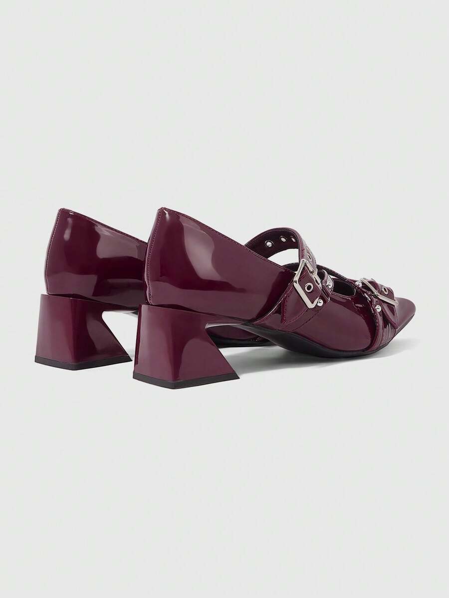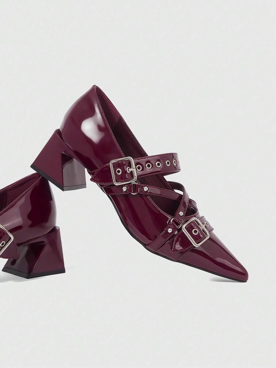 Grunge Punk Elegant Pointed Toe Chunky Heel Lacquer Leather Pumps
