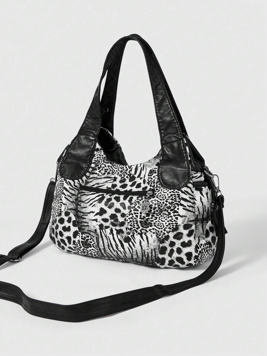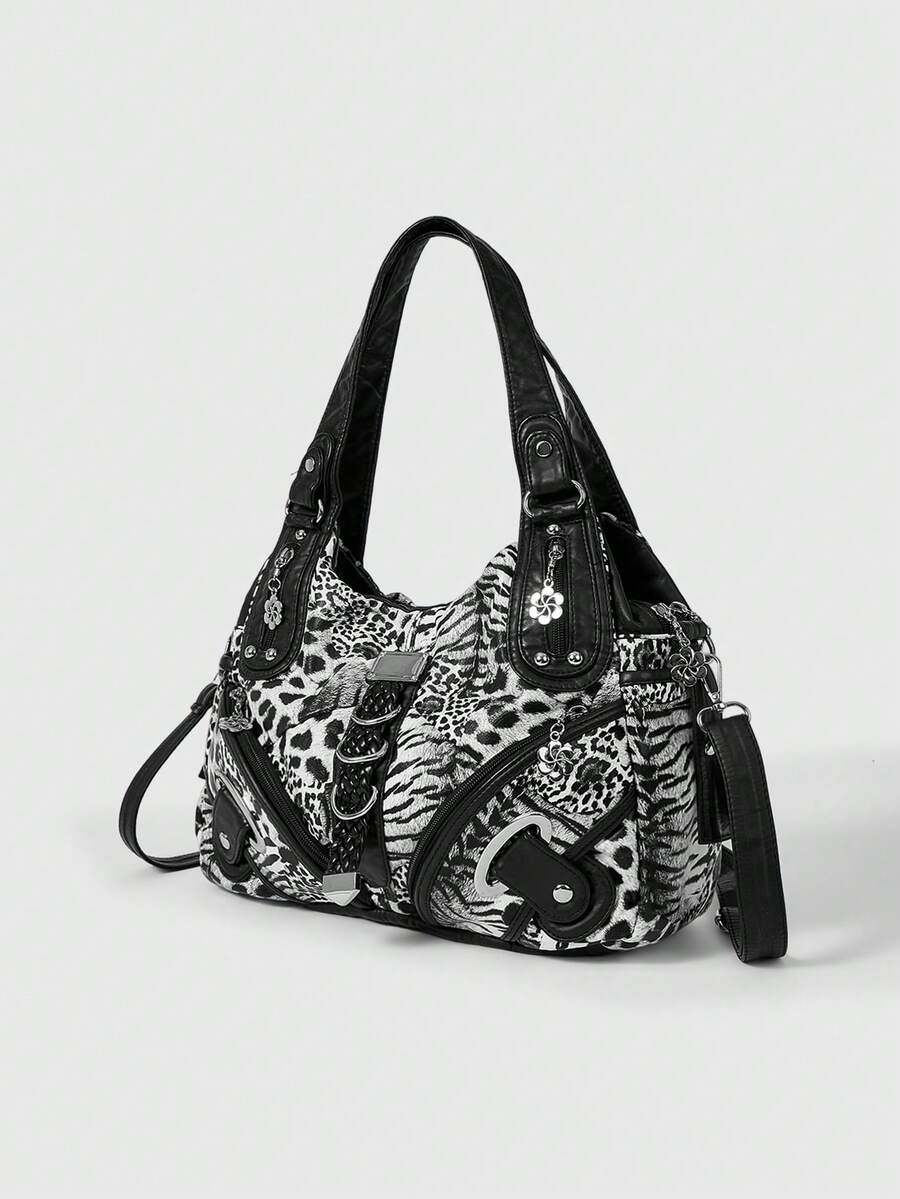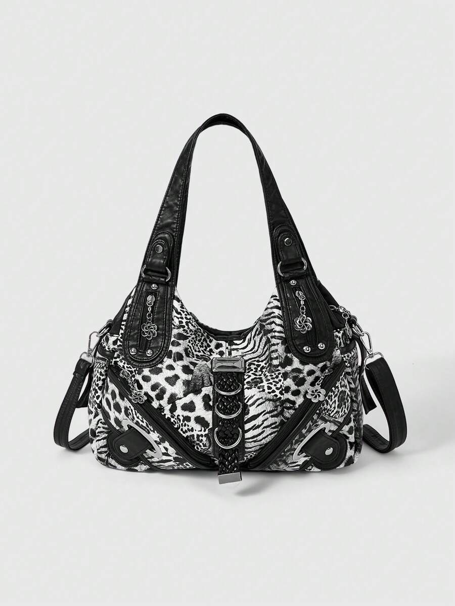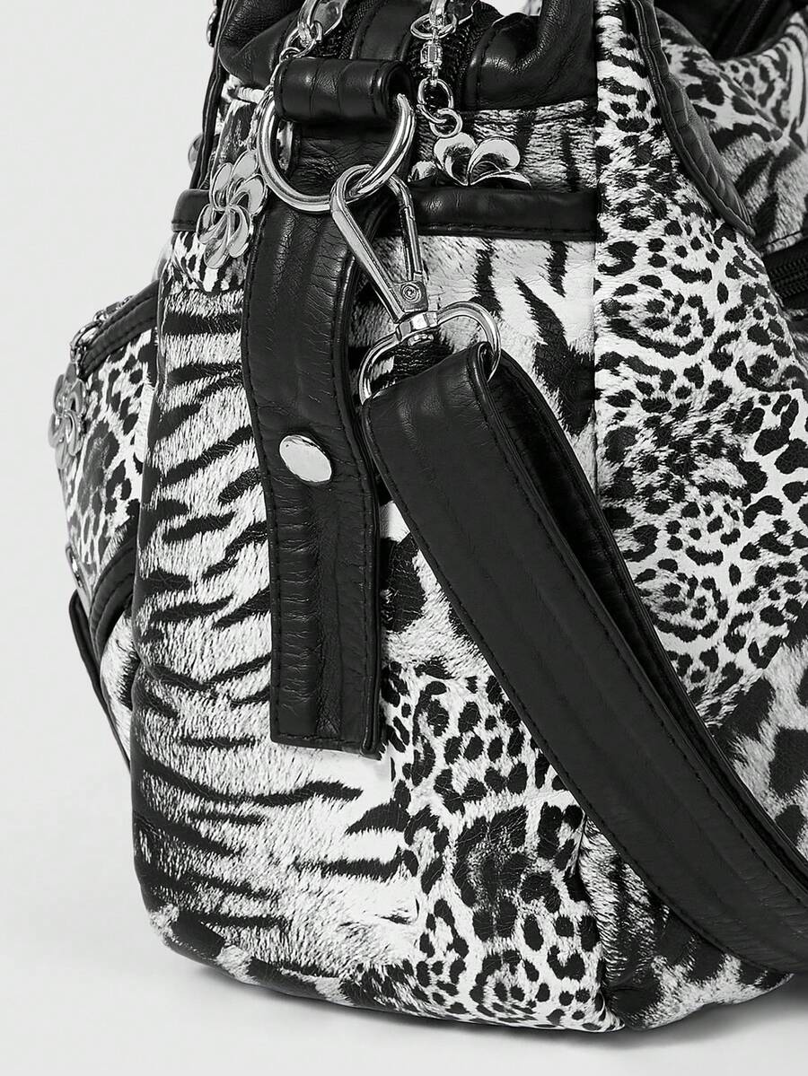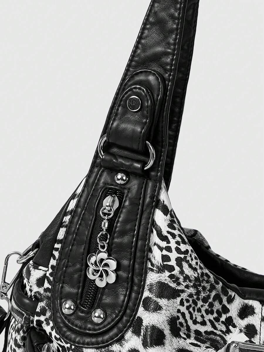 Grunge Punk Fashion Leopard Print Women's Bag Casual Punk Hottie Bag Women's Shoulder Bag Retro Locomotive Women's Bag