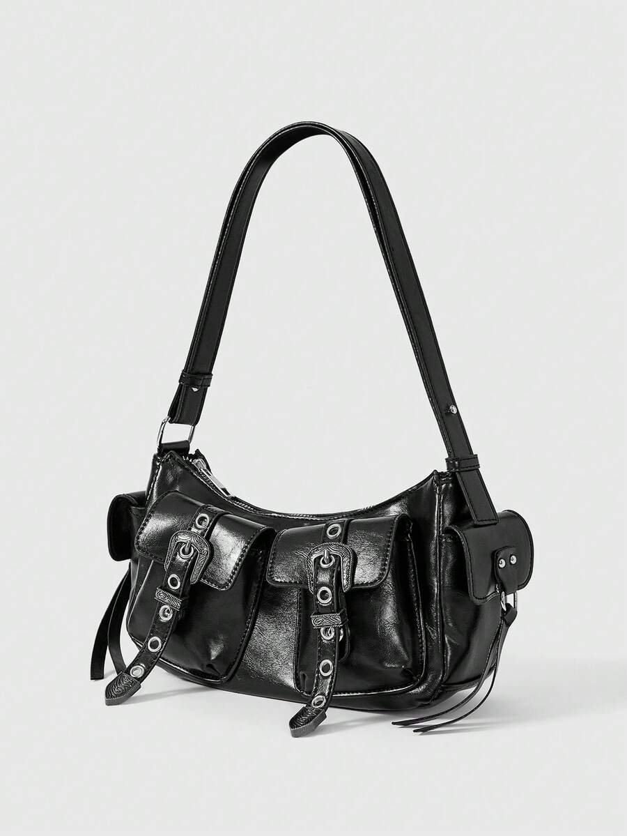 Grunge Punk Fashionable Commuter Punk Style Black Shoulder Bag
