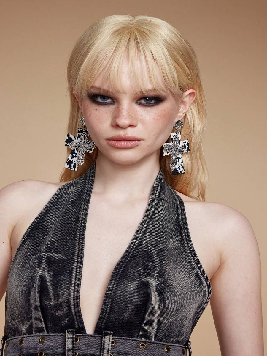 Grunge Punk Fashionable Unique Modern Wild Style Creative Cow Print Cross Pendant Earrings