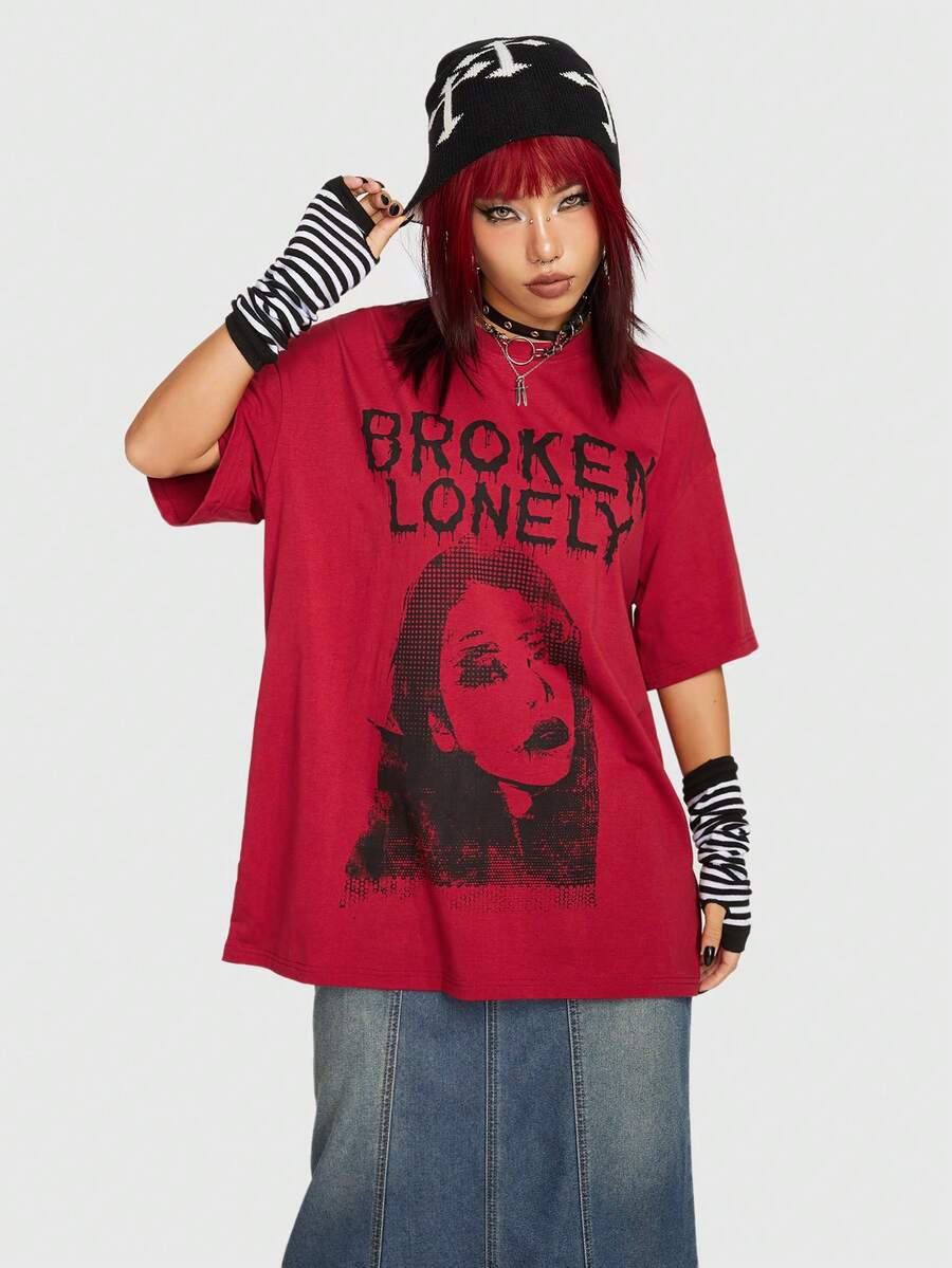 Grunge Punk Figure & Letter Graphic Drop Shoulder Tee