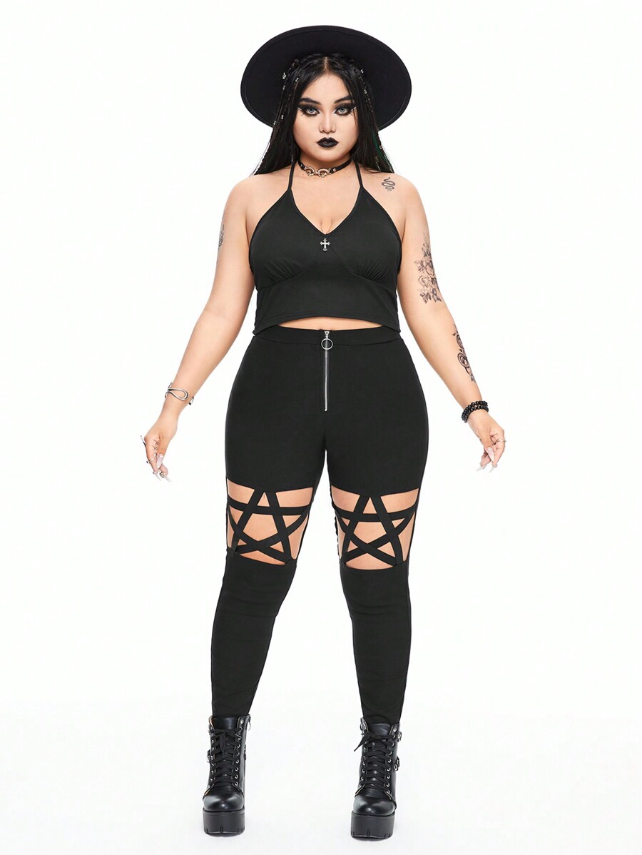 Grunge Punk Gothic Sexy Plus-Size Hollow Star Thigh Slimming Pants, School