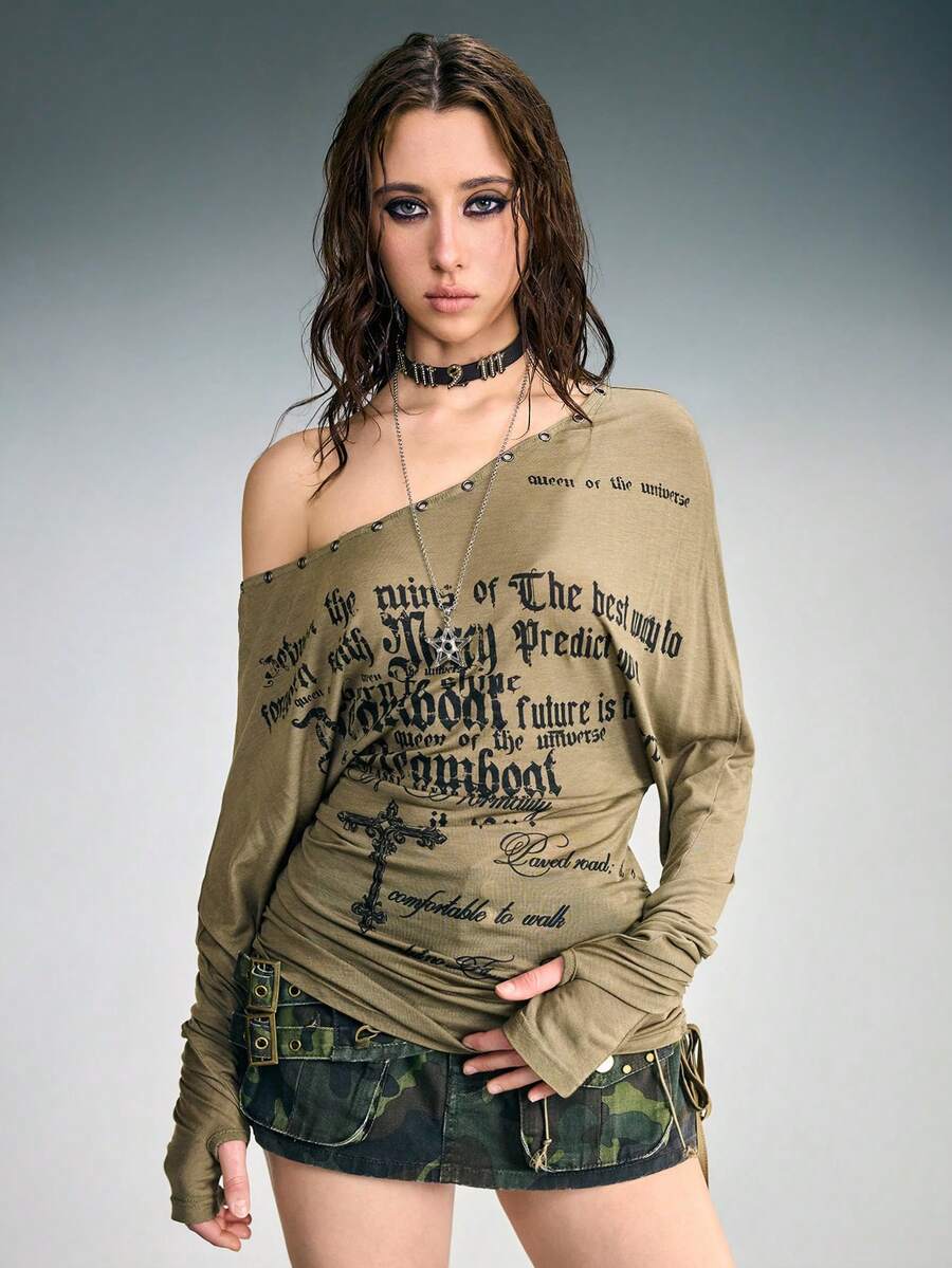 Grunge Punk Grunge Distressed V-Neck Slim Fit T-Shirt