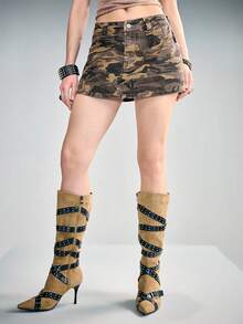 Grunge Punk Kpop Ultra Low Waist Sexy Vintage Mini Pleated Camouflage Patchwork Faux Fur Metal Grommet Skirt