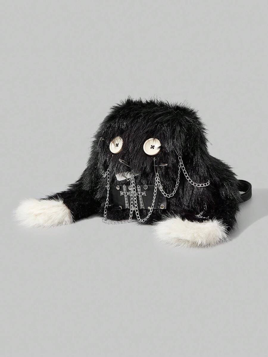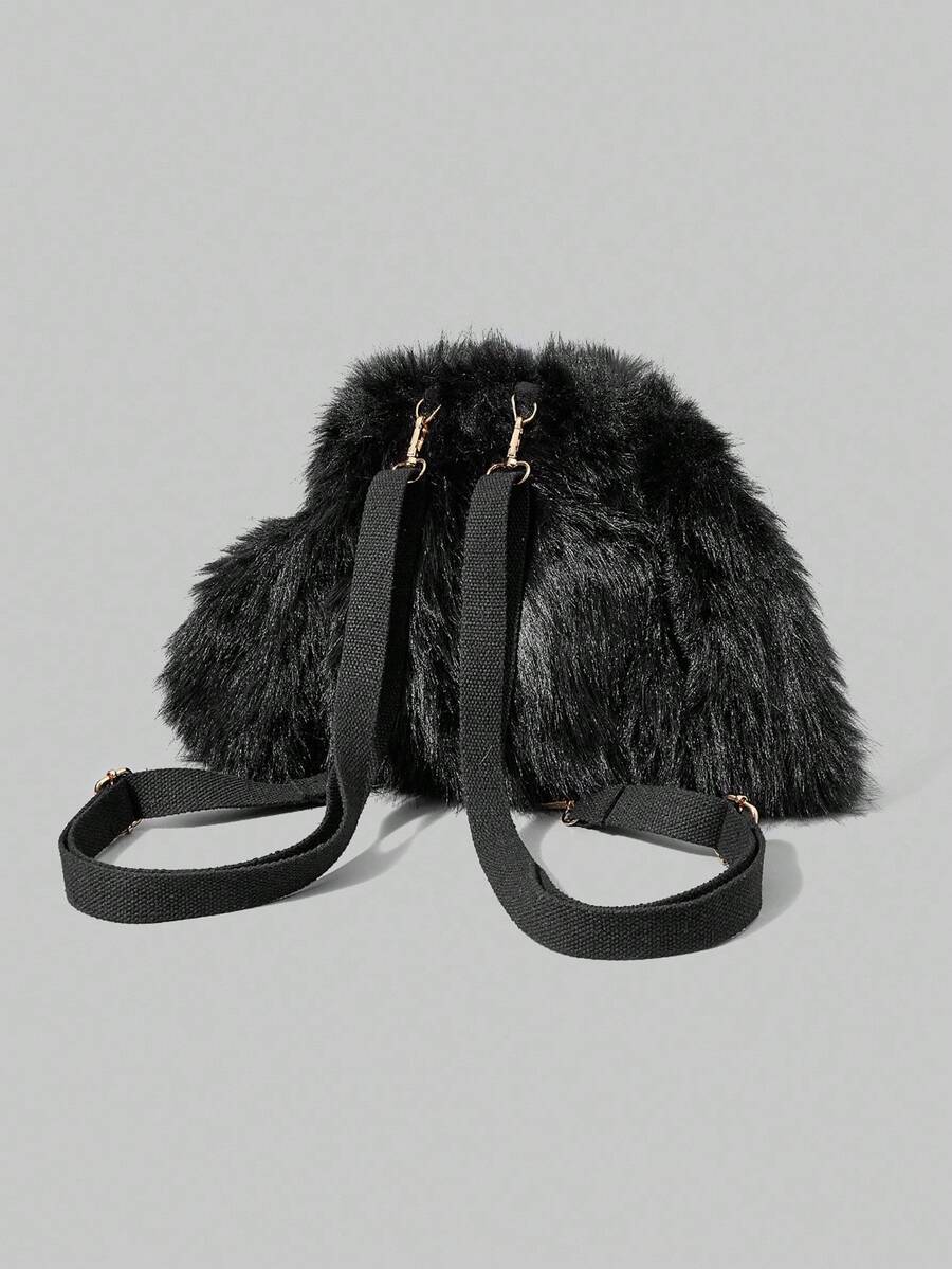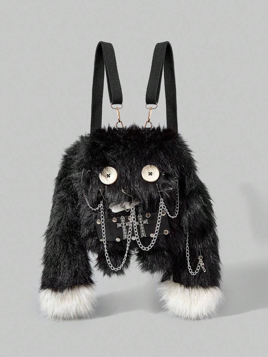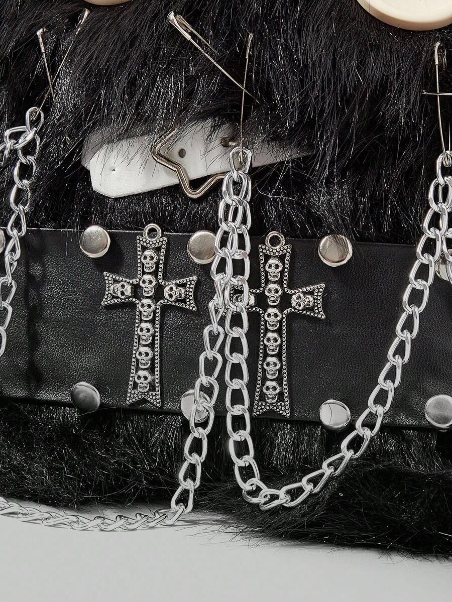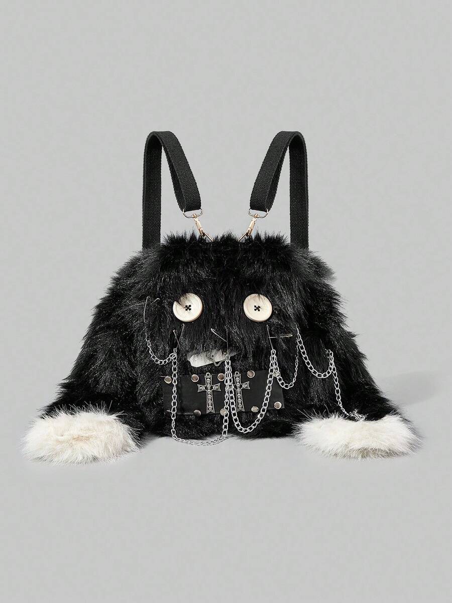 Grunge Punk Ladies, Women Backpack,Plush,Punk,Black, Fashionable, Personalized, Simple, Versatile, Street, Sweet And Cool Girls, Hot Girls,Y2k, Retro, Rivets, Vintage,Teenagers,Preppy Style,School, College,Autumn And Winter
