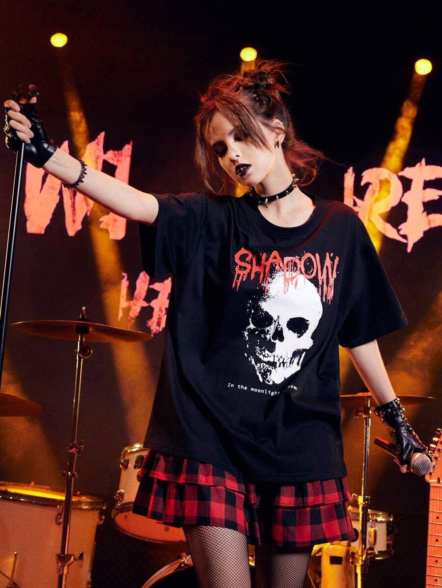 Grunge Punk Letter Skull Graphic Drop Shoulder Tee