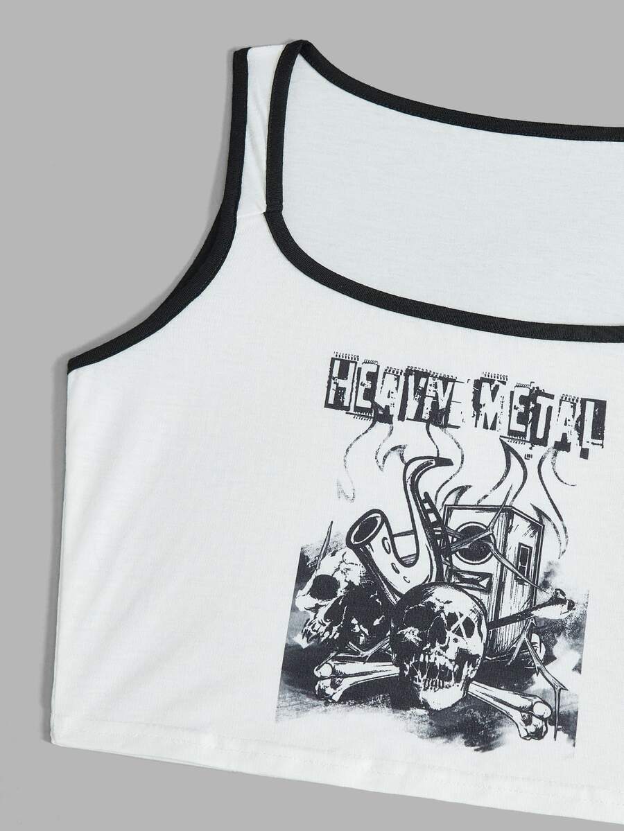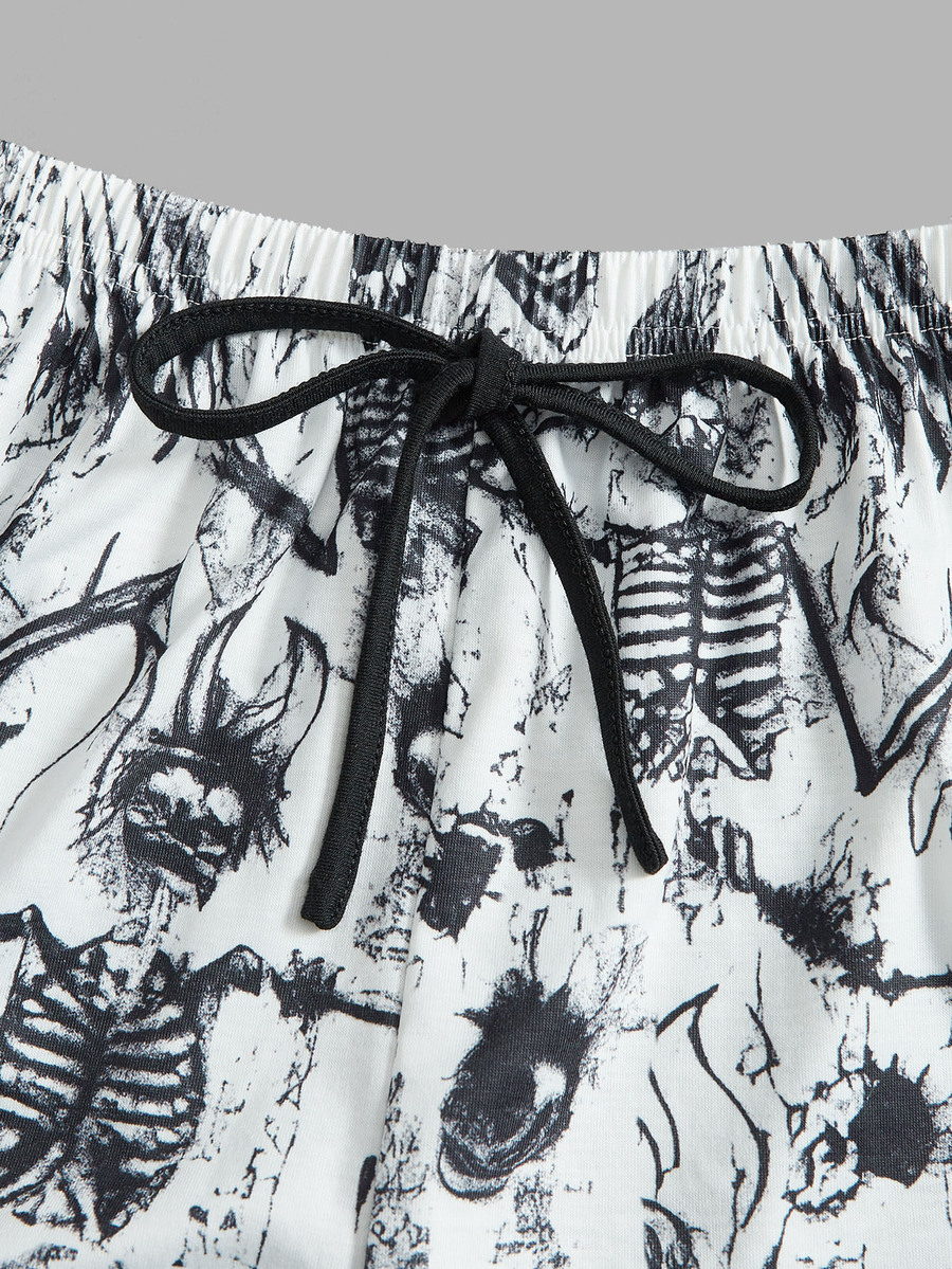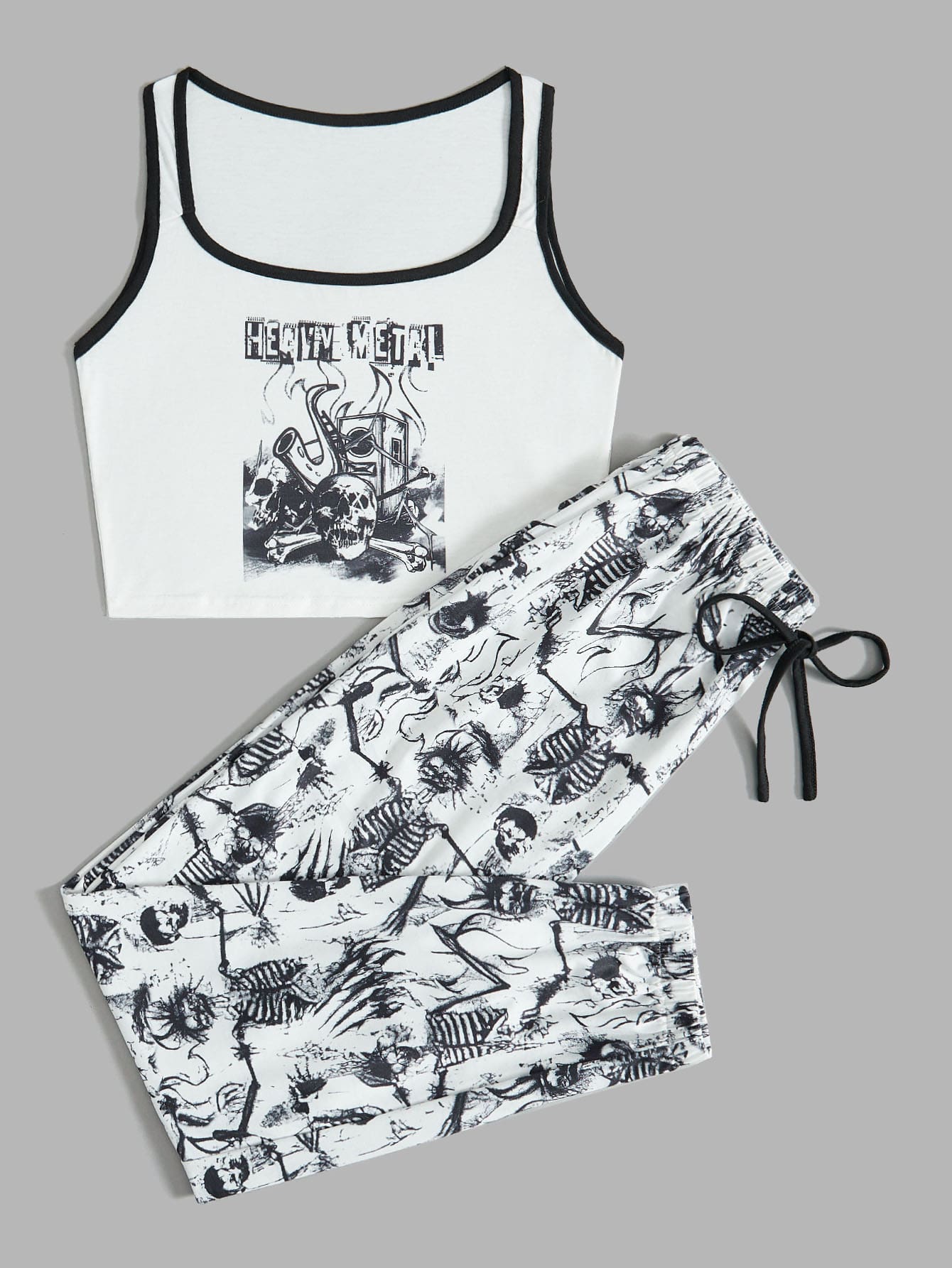 Grunge Punk Letter Skull Graphic Ringer Pajama Set