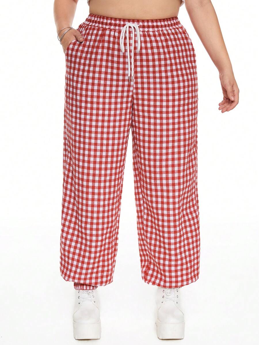 Grunge Punk Loose Plaid Casual Sweatpants In Plus Size