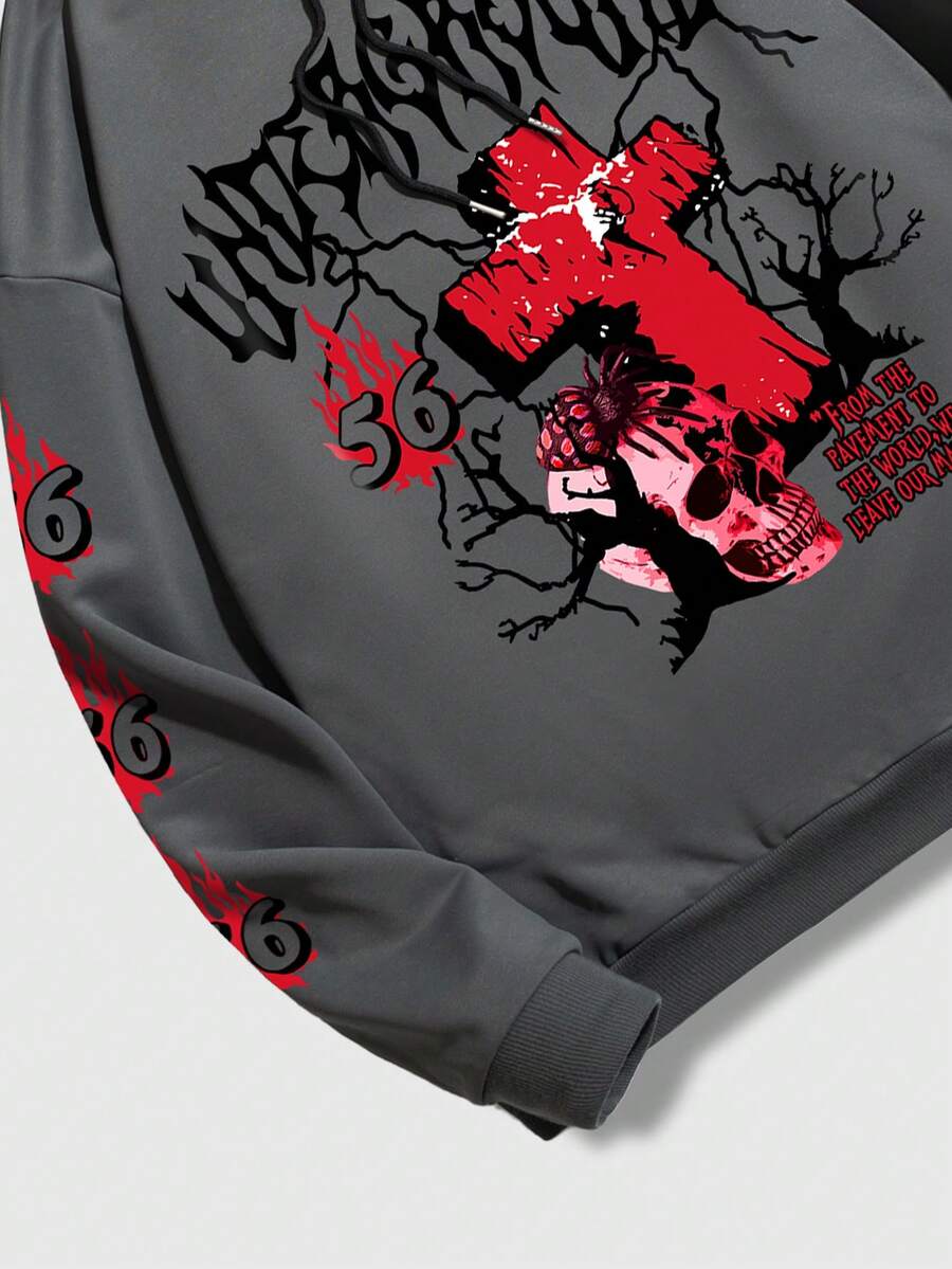 Grunge Punk Men Letter Graphic Drawstring Hoodie