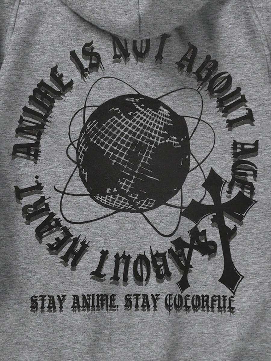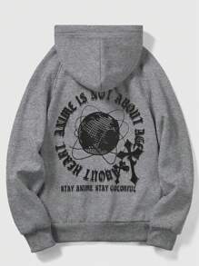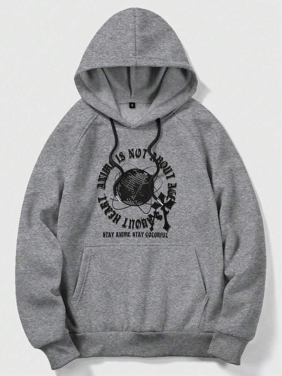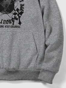 Grunge Punk Men Slogan & Figure Graphic Kangaroo Pocket Drawstring Thermal Hoodie