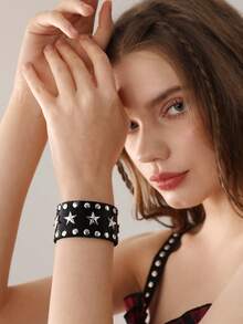 Grunge Punk Men Star Decor Bracelet