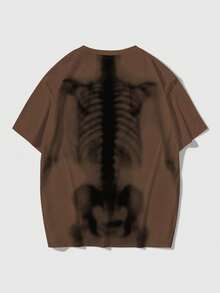 Grunge Punk Men's Casual Skull Skeleton Print Round Neck Short Sleeve T-Shirt, Summer