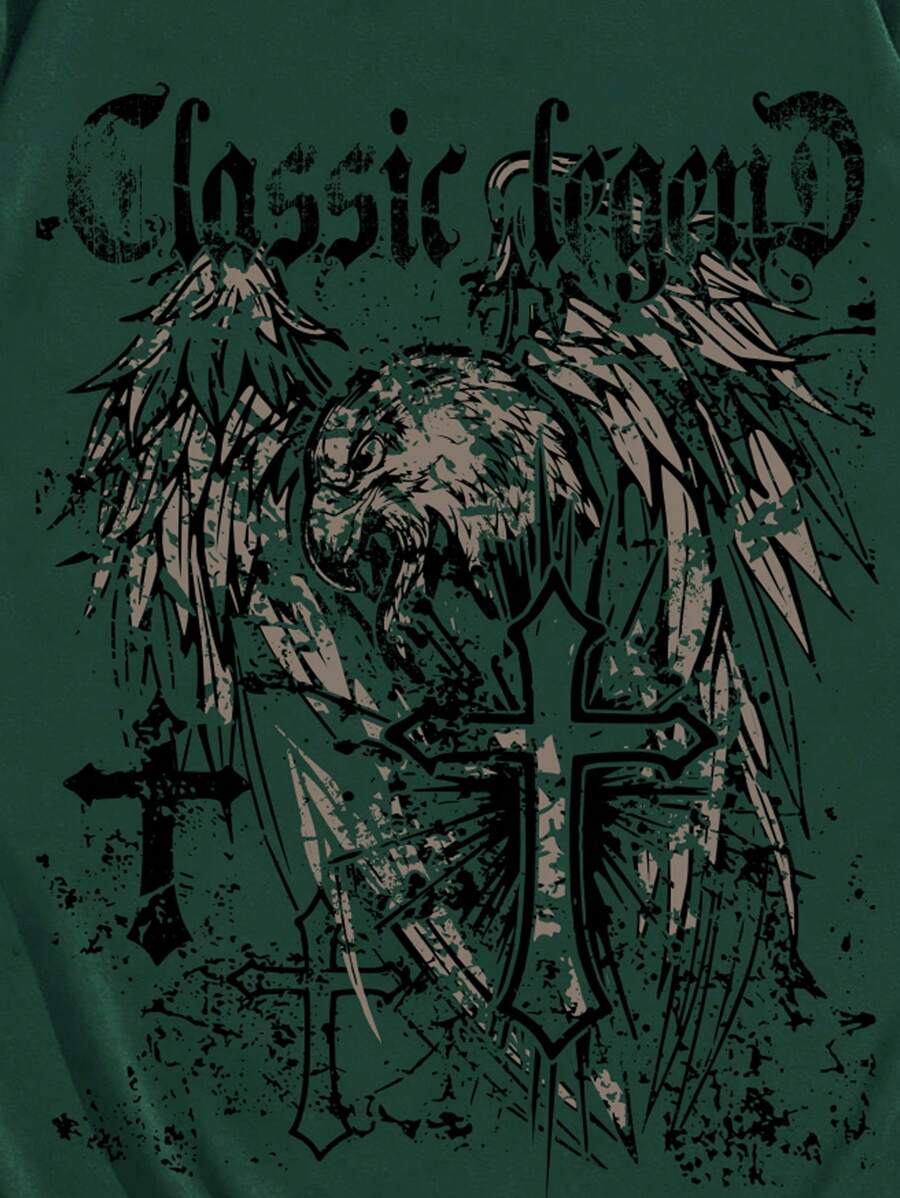 Grunge Punk Men's Dark Gothic Letter & Cross Print Short Sleeve T-Shirt