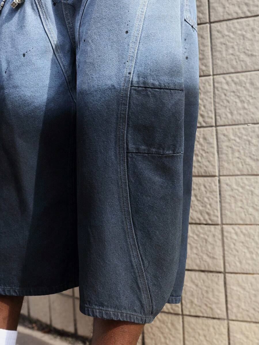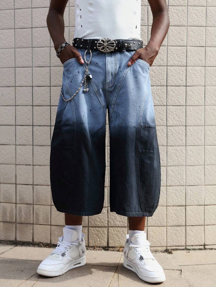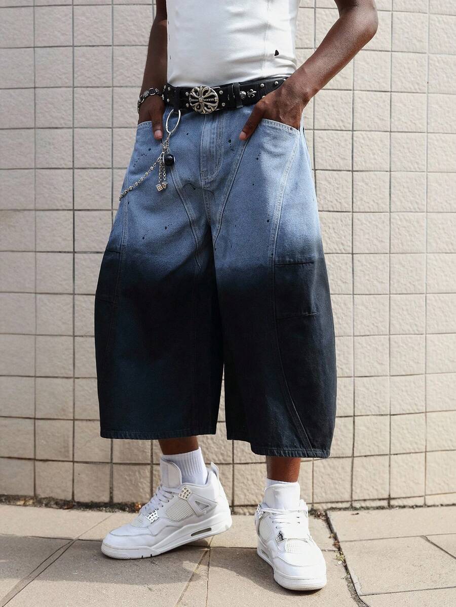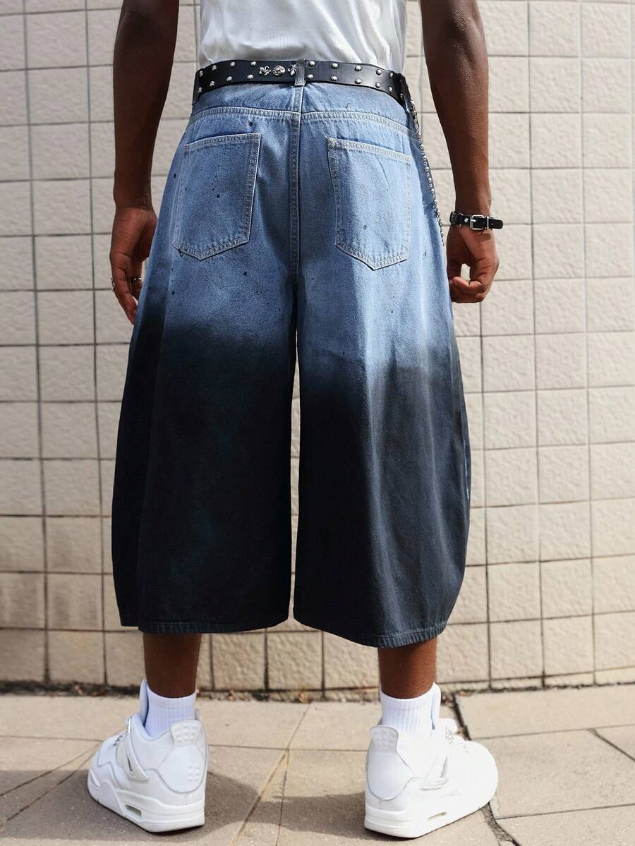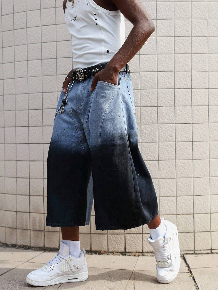 Grunge Punk Men's Grunge Baggy Fit Fashion Washed Gradient Wide-Leg Jeans