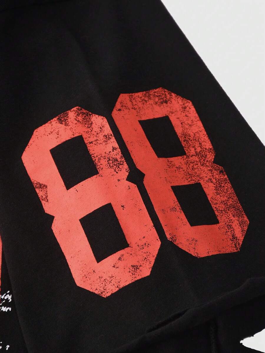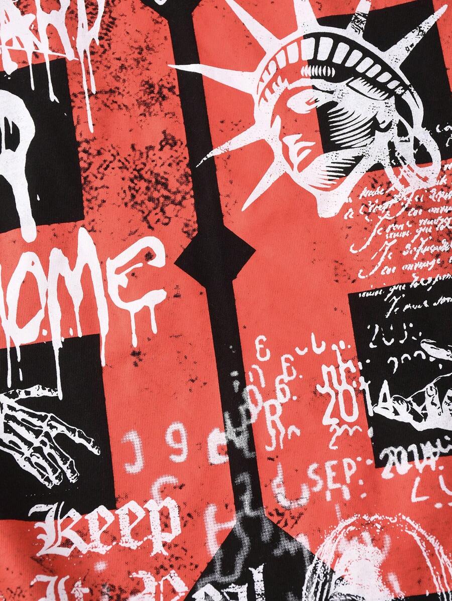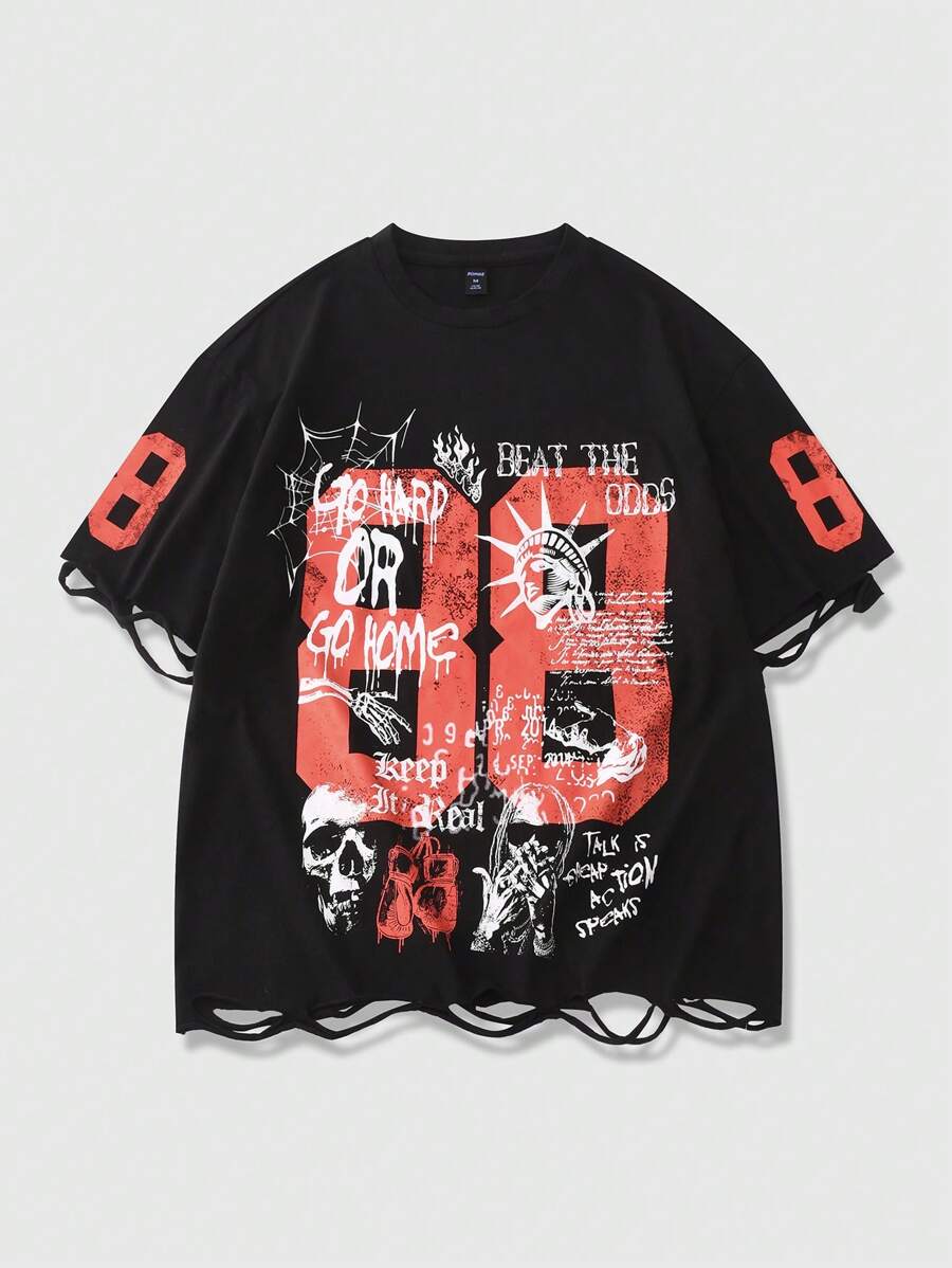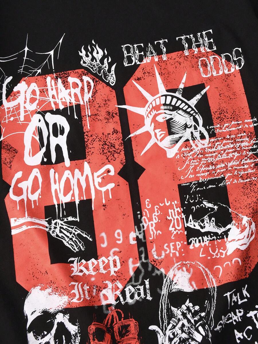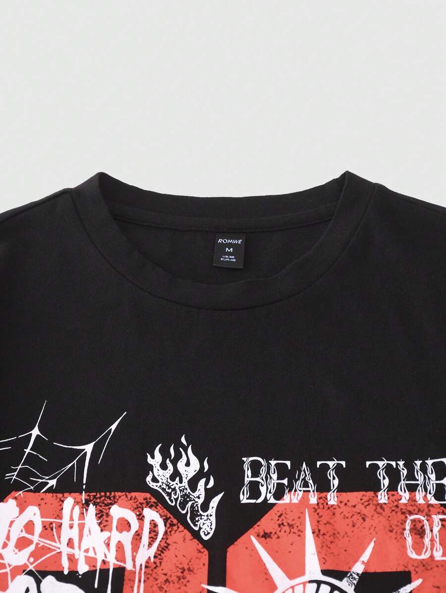 Grunge Punk Men's Grunge Round Neck Short Sleeve Letter Print Casual Tee, Daily Wear