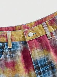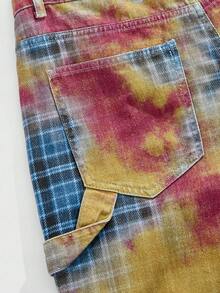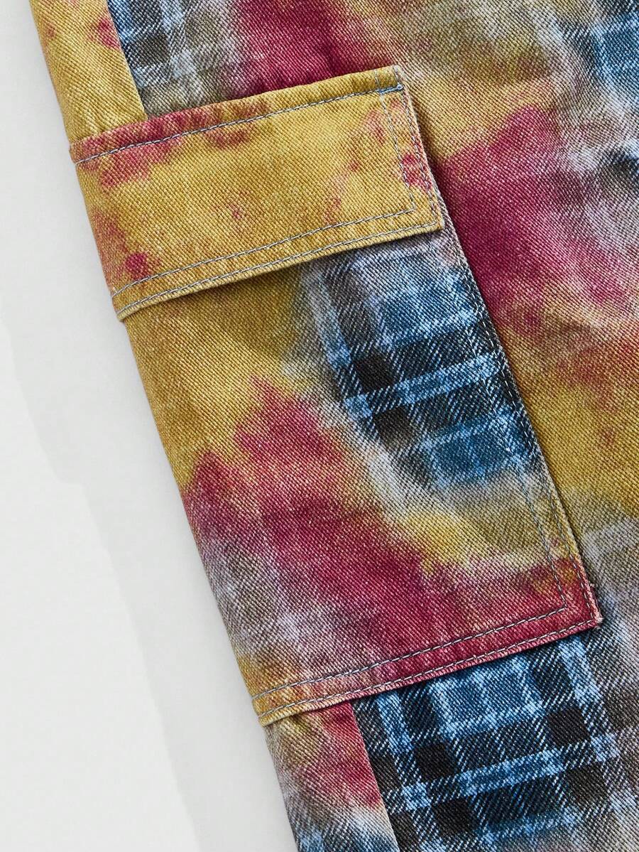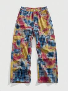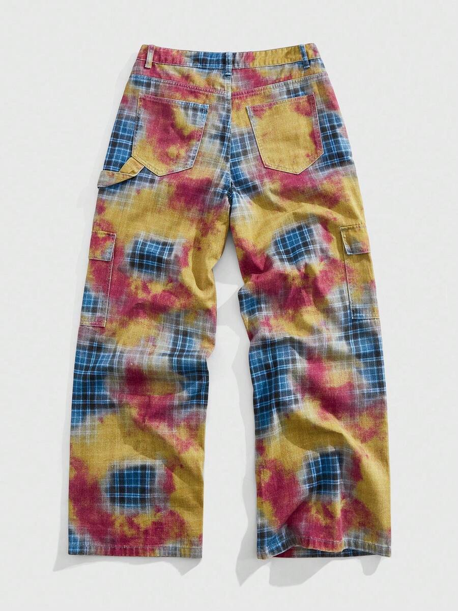 Grunge Punk Men's Plaid Cargo Pocket Wide Leg Loose Casual Jeans
