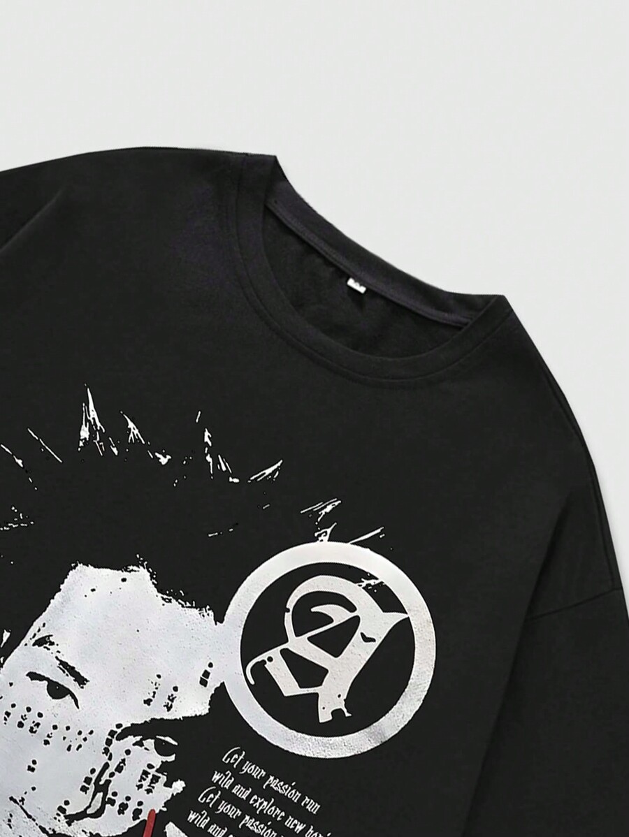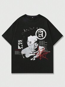 Grunge Punk Men's Portrait And Slogan Print Short Sleeve T-Shirt, School