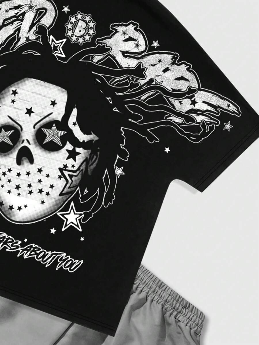 Street Life Men's Punk Round Neck Short Sleeve Printed Casual Top And Shorts Set