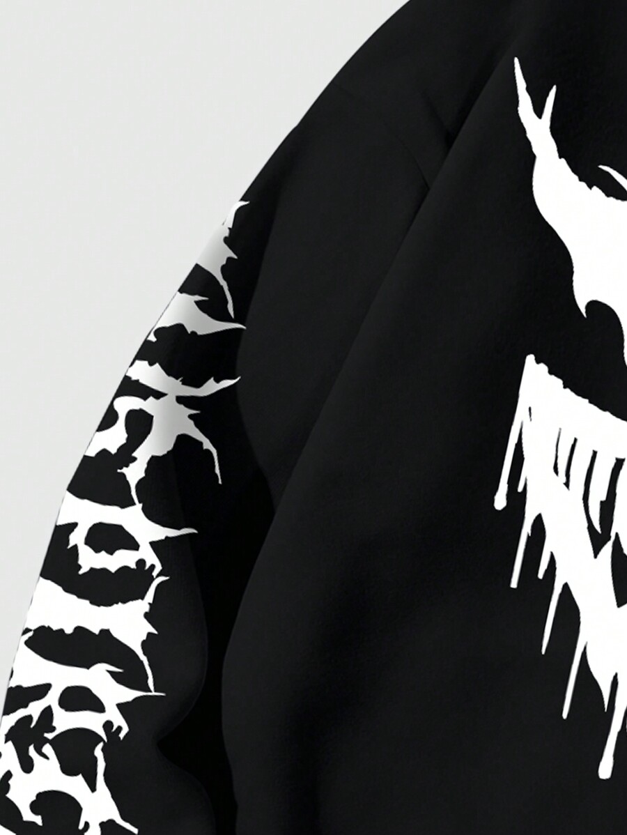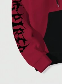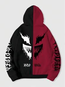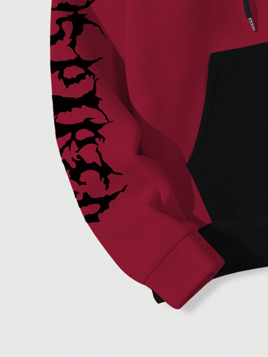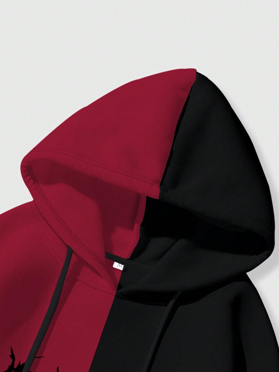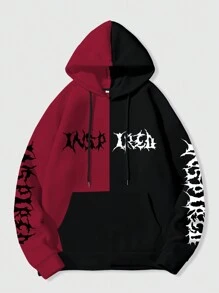 Grunge Punk Men's Solid Color Patchwork Long Sleeve Hoodie With Graphic Print, Casual Daily Wear
