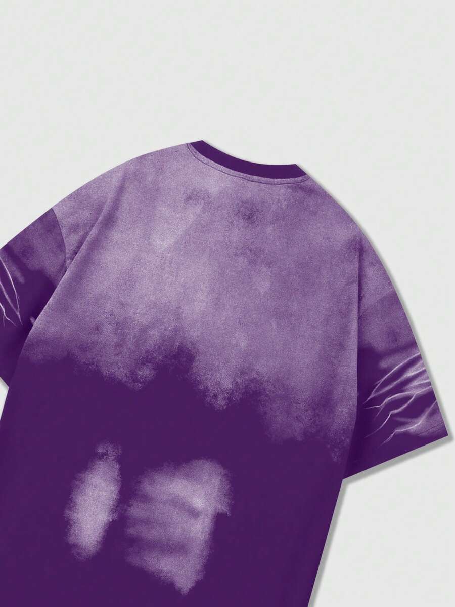 Grunge Punk Men's Street Vintage Washed Round Neck Short Sleeve T-Shirt, Streetwear