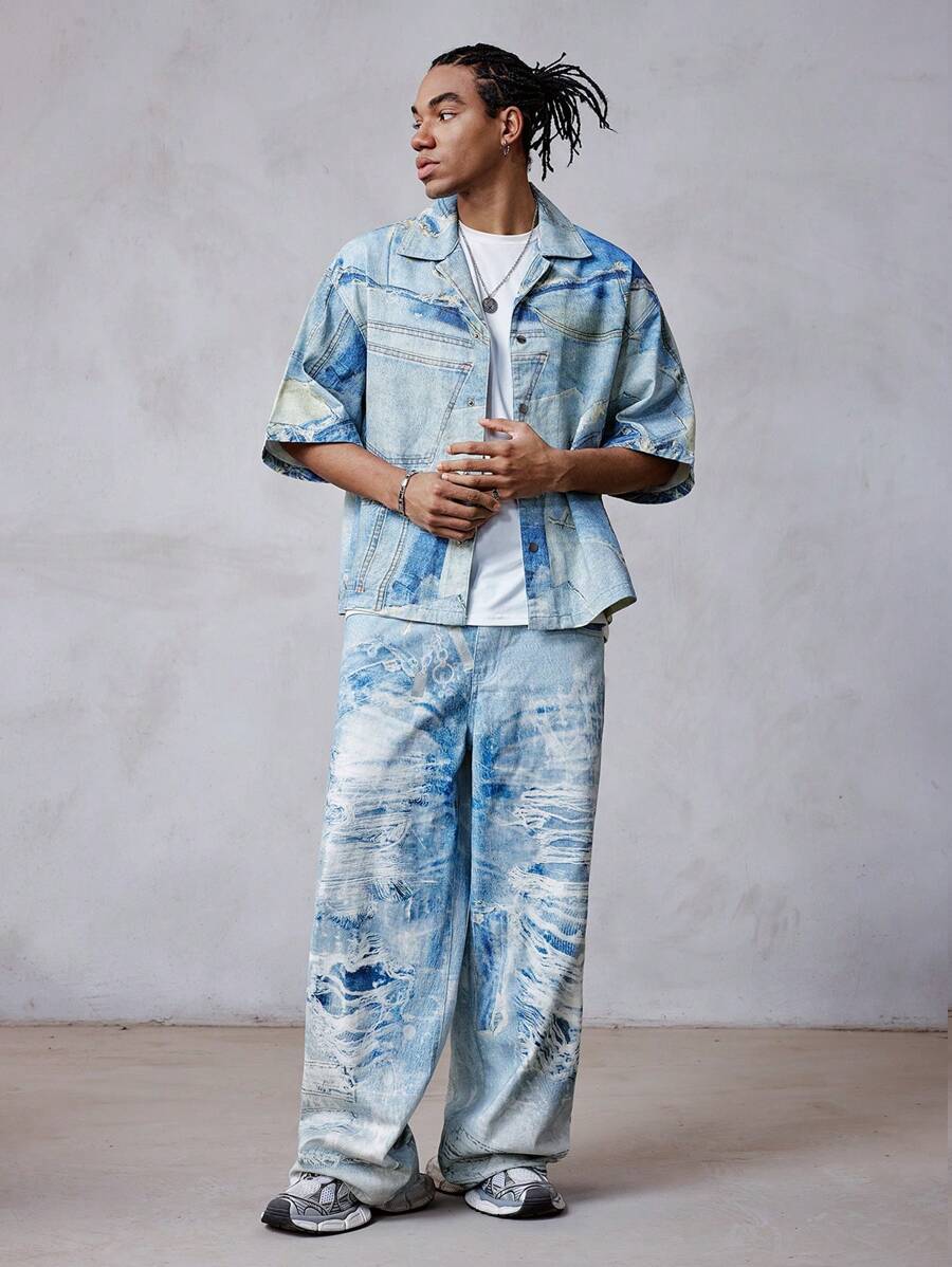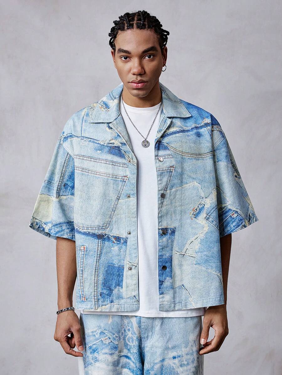 Street Life Men's Turn-Down Collar Short Sleeve Single-Breasted Casual Denim Top