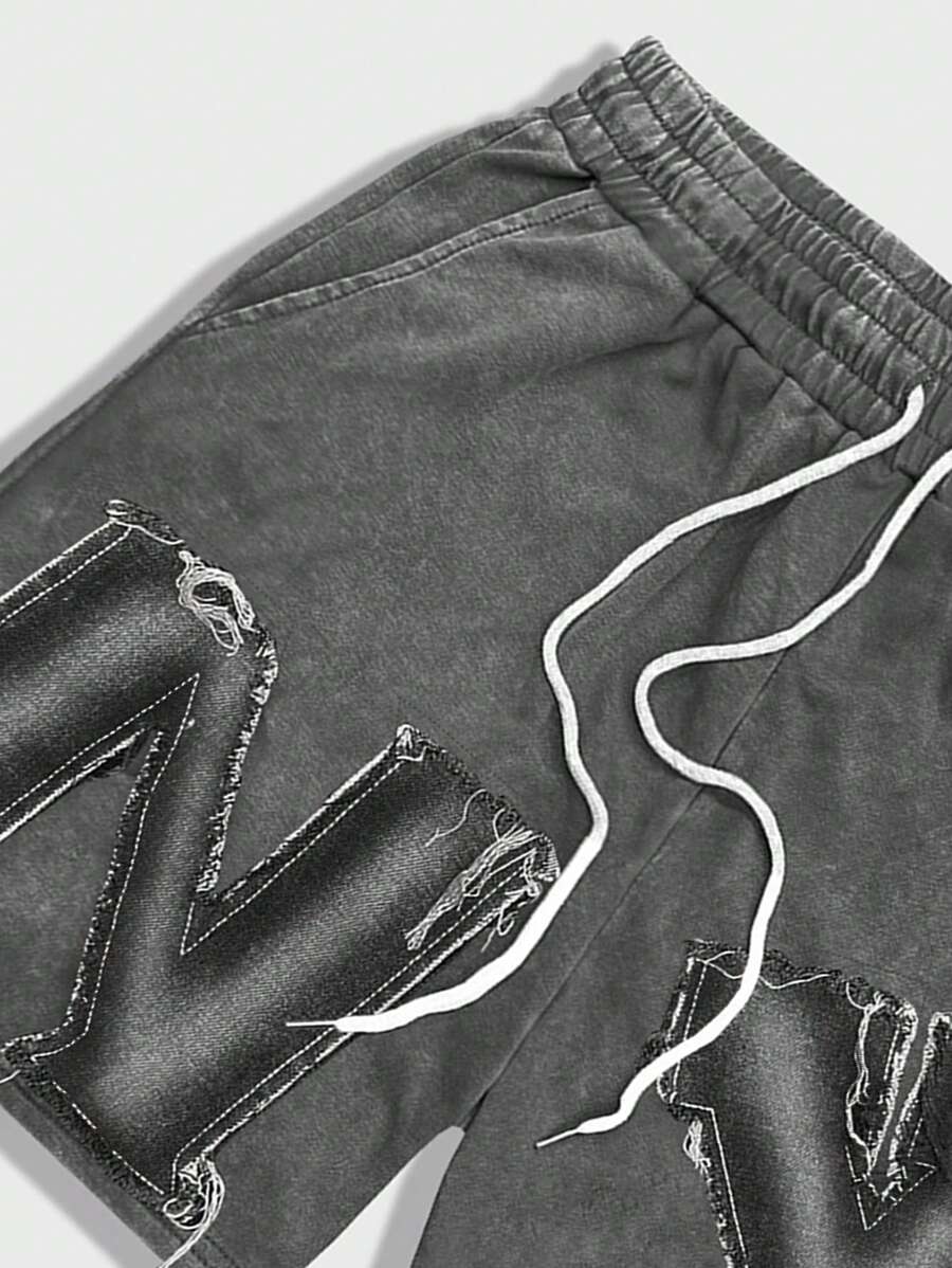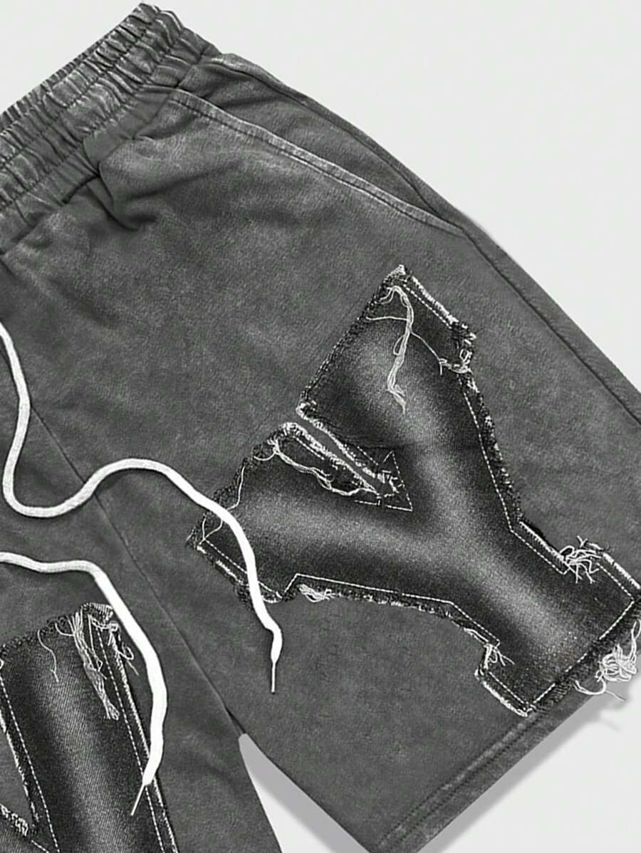 Grunge Punk Men's Washed Casual Shorts, Minimalist & Fashionable, Suitable For Summer