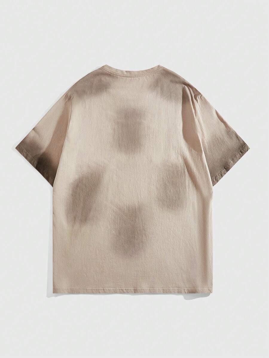 Grunge Punk Men's Washed Gradient Letter Embroidered T-Shirt, Casual Everyday Wear
