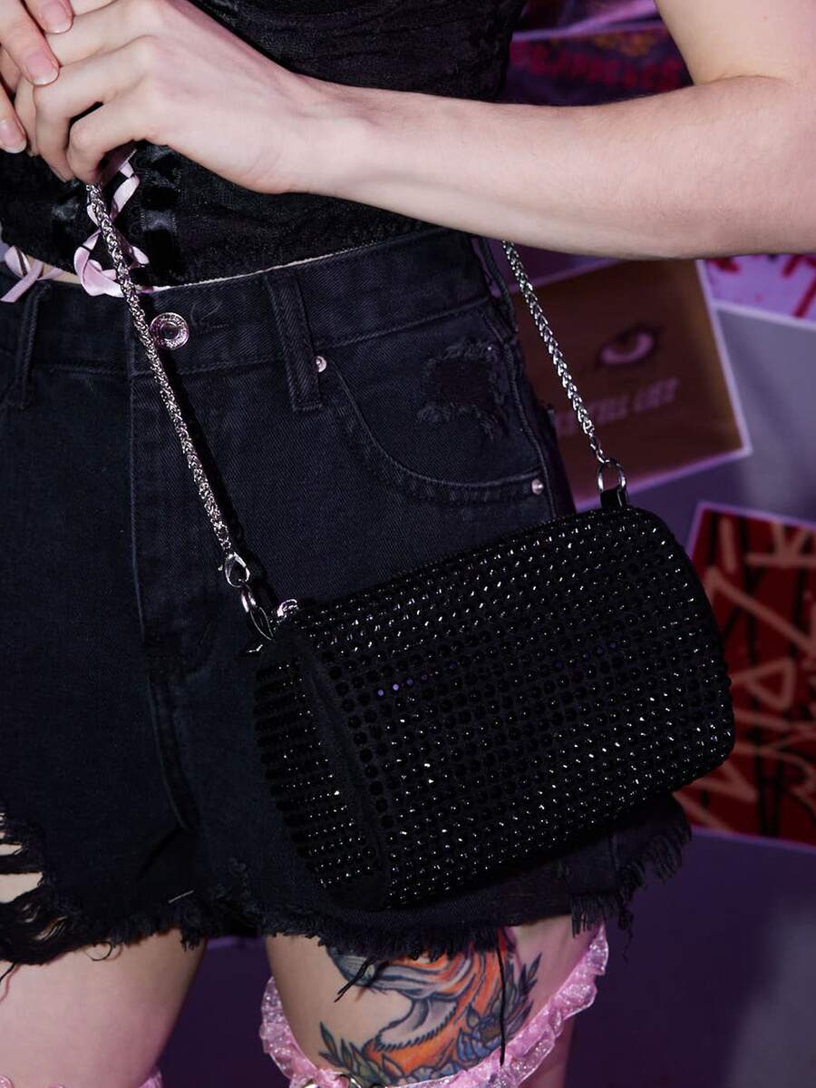 Grunge Punk Mini Rhinestone Decor Shoulder Bag
