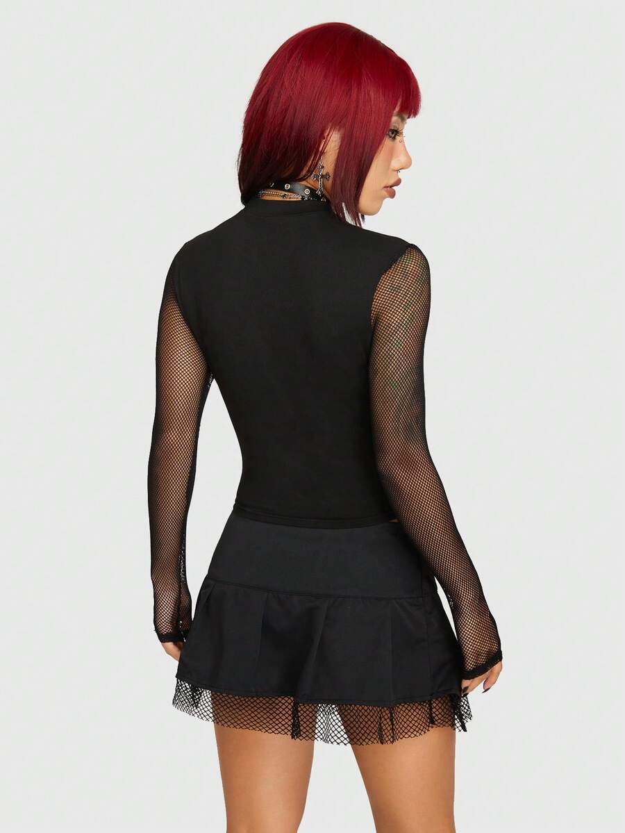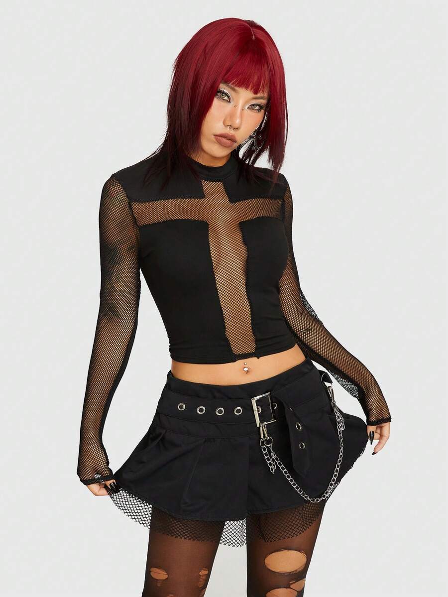 Grunge Punk Mock Neck Mesh Top Without Bra