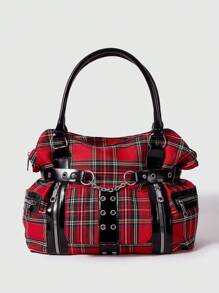 Grunge Punk New Gothic Style Ladies' Plaid Tote Bag, Punk Rock Motorcycle Messenger Bag, Women Shoulder Bag