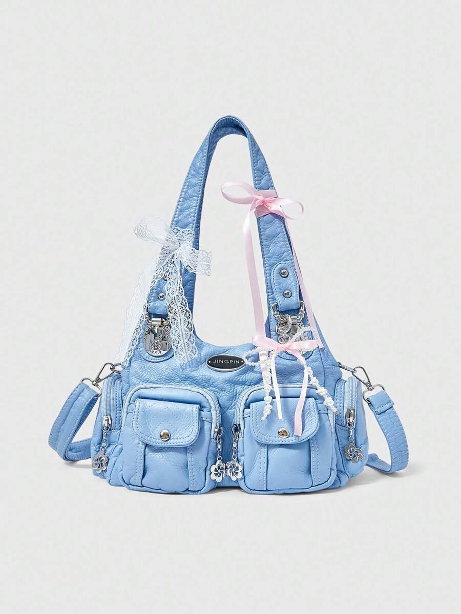 Grunge Punk New Rocker Chic Shoulder Bag, Women Dark Punk Motorcycle Tote Bag