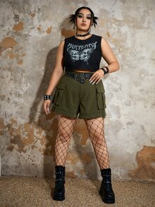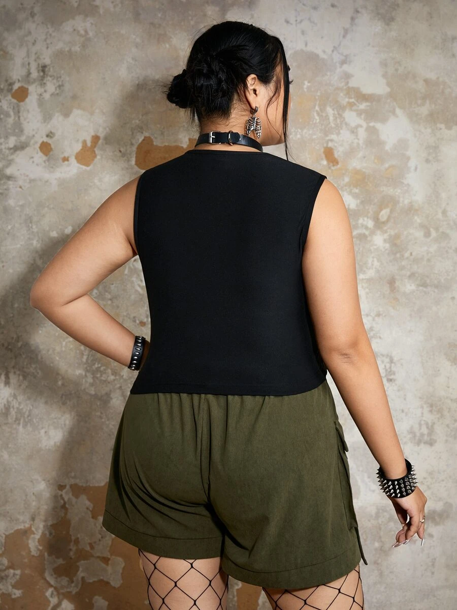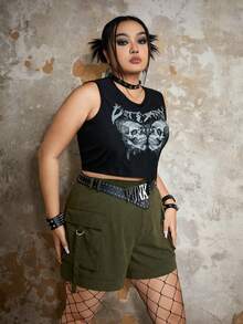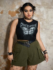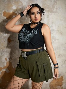 Grunge Punk Plus Butterfly Skull Print Tank Top
