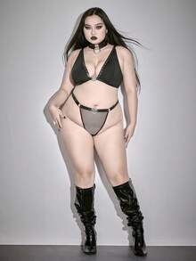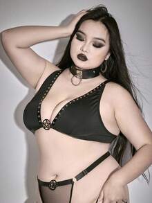 Grunge Punk Plus Size Dark Punk Style Pentagram Metal Ring Grommet Bralette