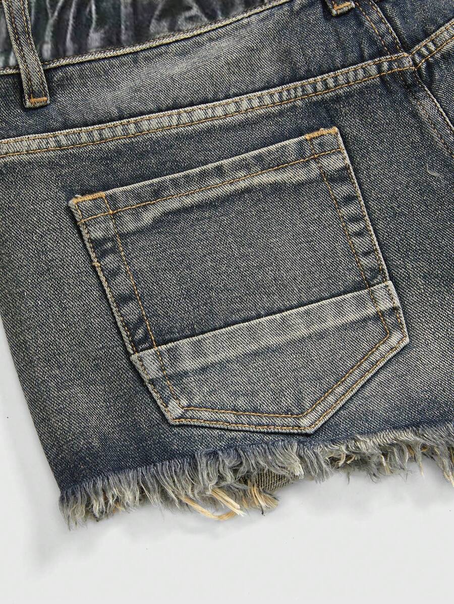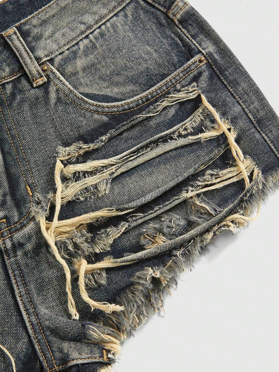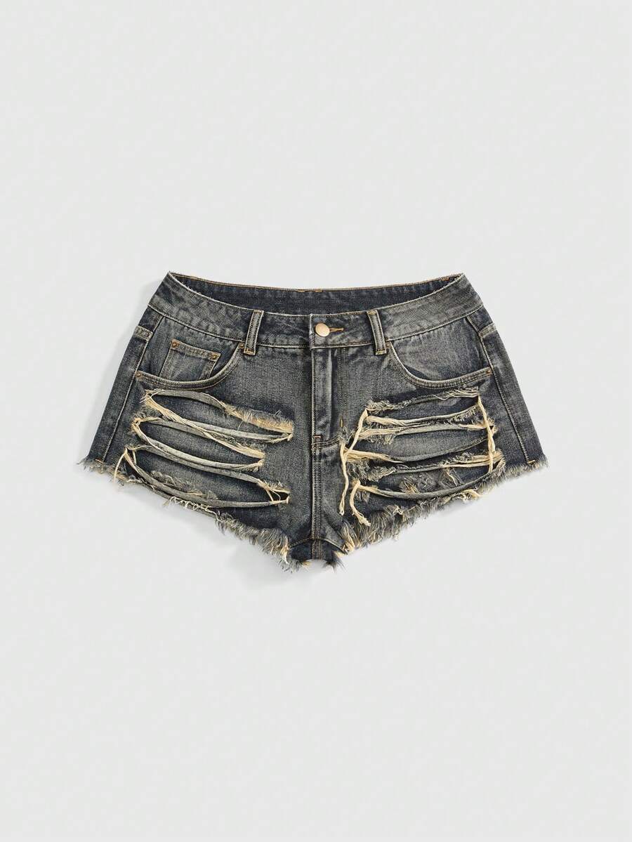 Grunge Punk Plus Size Women Asymmetrical Distressed Design Low Waist Denim Mini Shorts For Concert