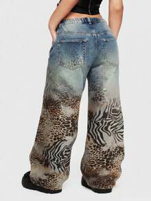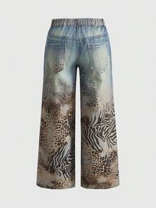 Grunge Punk Plus Size Women Grunge-Punk Y2K Subculture Leopard Tiger Texture Print Jeans, Creative Autumn/Winter Denim Pants
