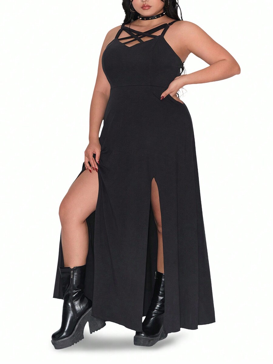 Grunge Punk Plus Size Women's Pentagram Decor Sexy Slit Dress